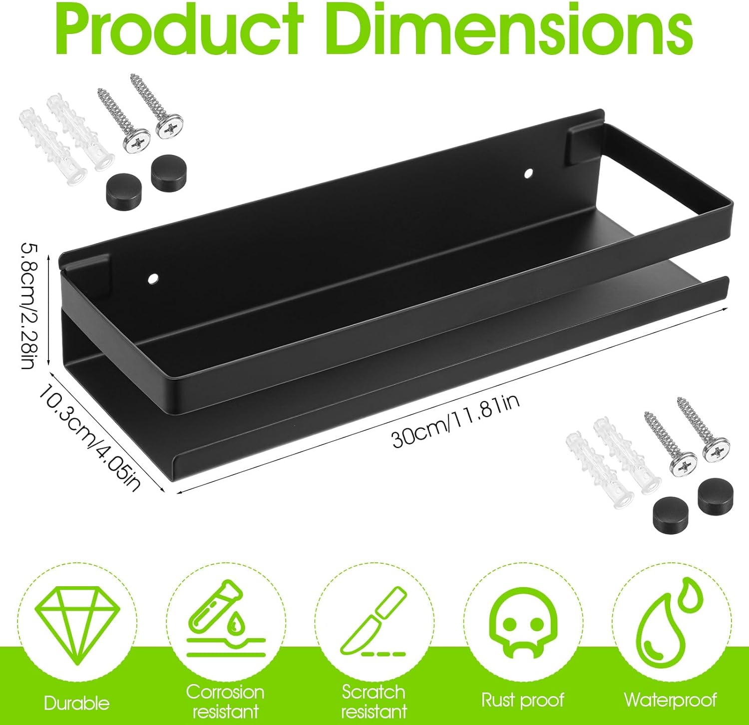 - 【Package Included】you will receive 2 pieces of floating shower shelves, with 4 screws, 4 wall anchors, 4 hidden covers, 4 nuts, outdoor wall shelf the quantity is enough for your daily needs and replacement demands; The overall size is about 11.81 x 3.94 x 2.28 inches/ 30 x 10 x 5.8 cm, with 0.19 inch/ 0.5 cm screw holes