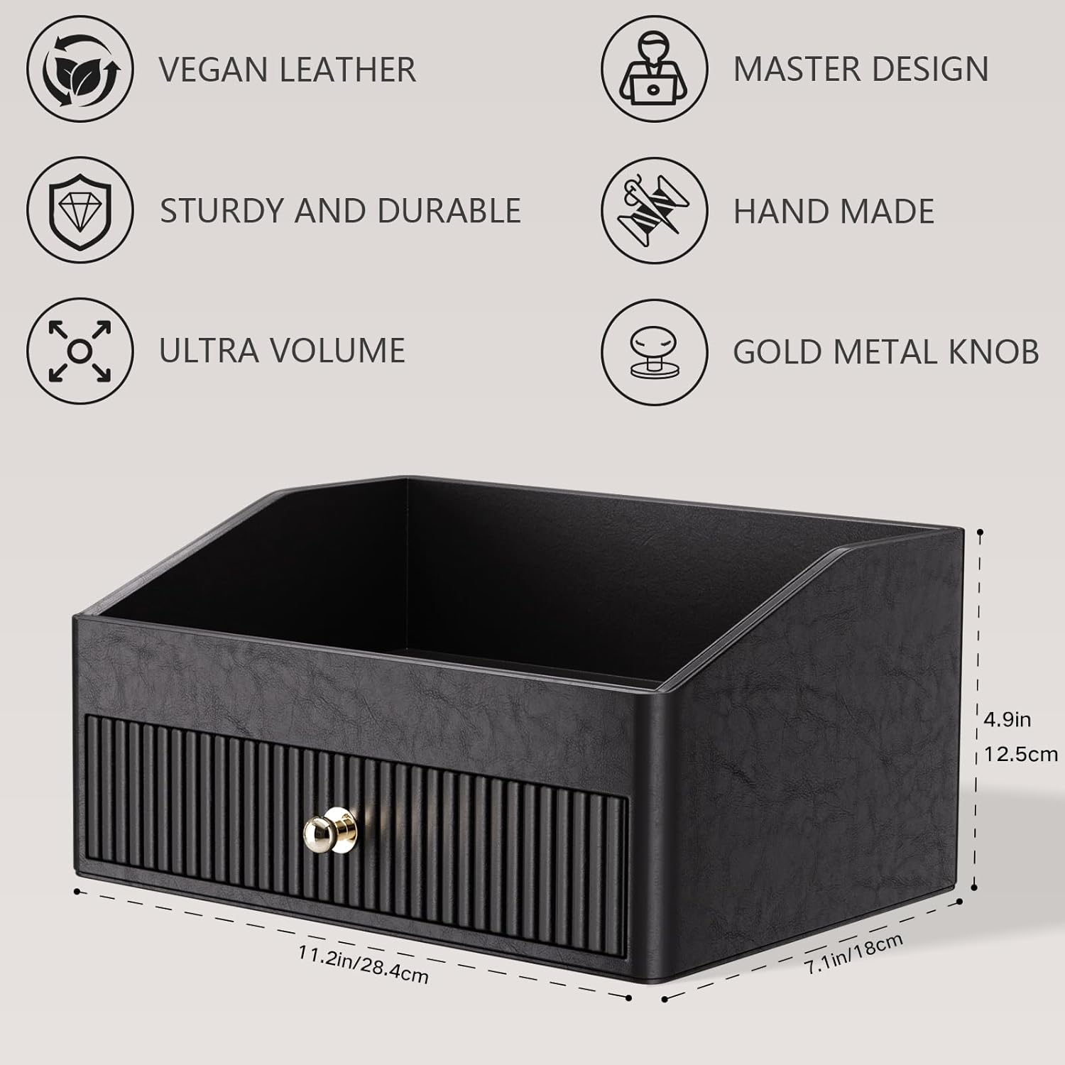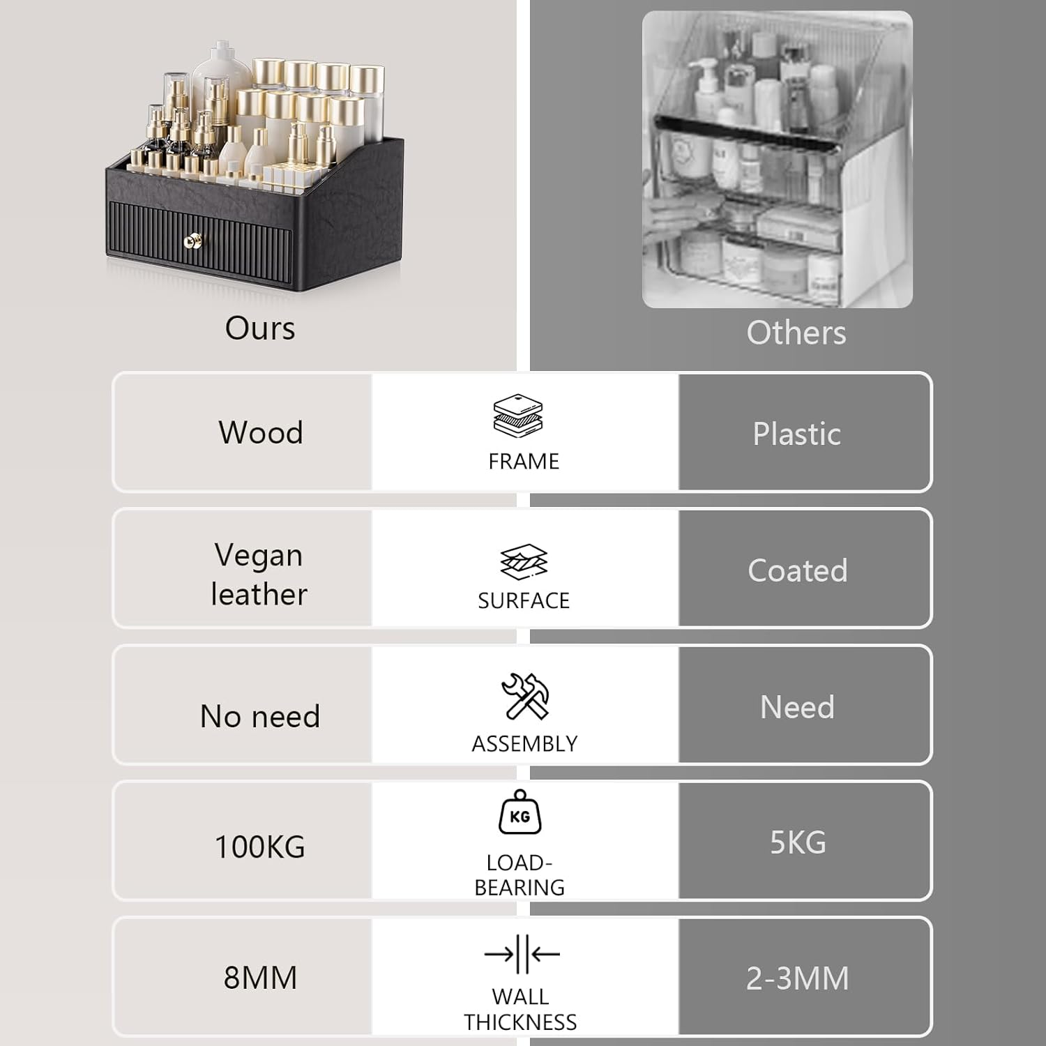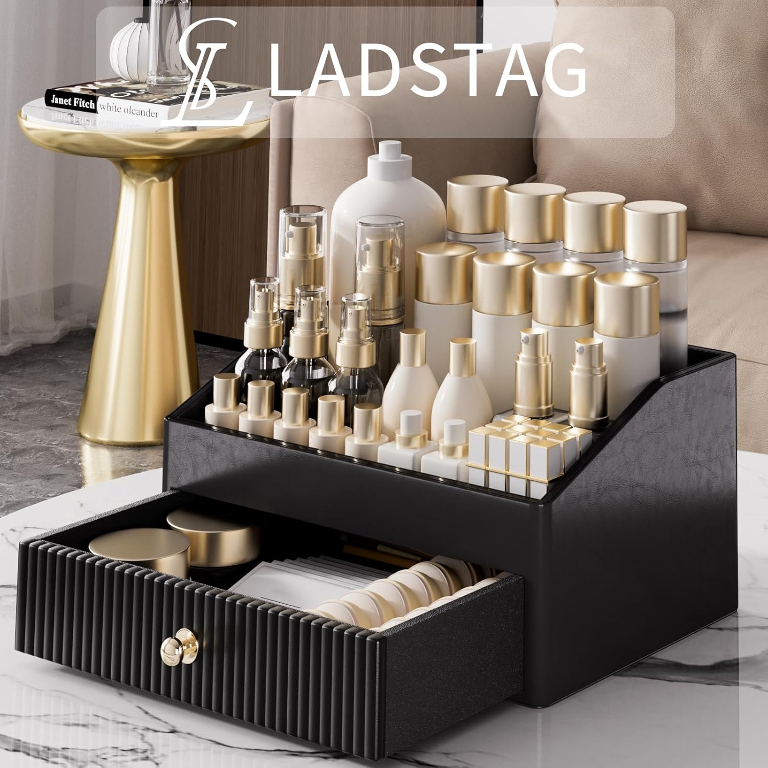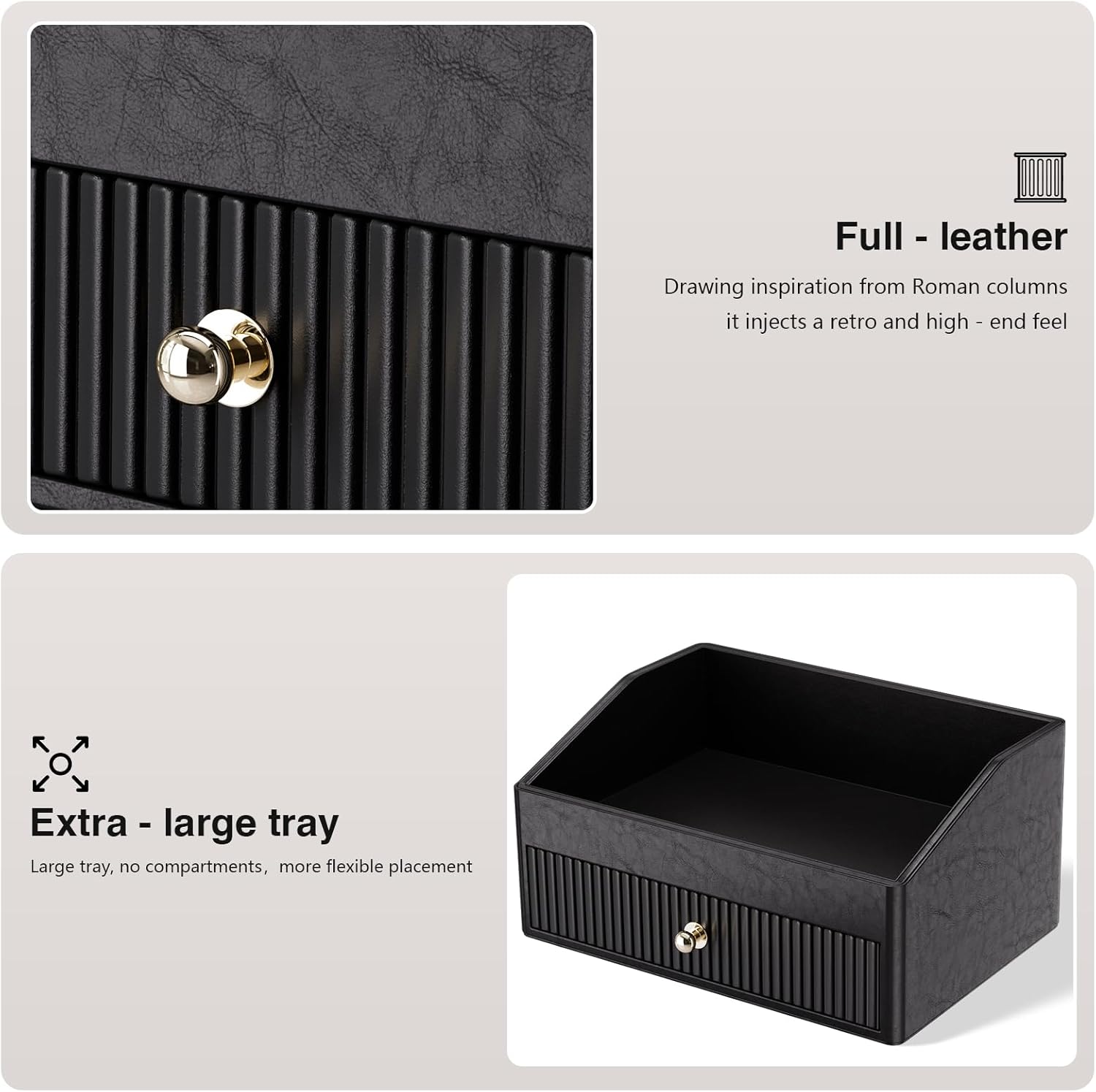 Vanity Organizer,Leather Skin Organizers with 1 Drawer&Tray,Large Capacity Black Vanity Organizers and Storage for Lipstick,Bedroom,Bathroom,Mothers Day Gifts,Gift for Women