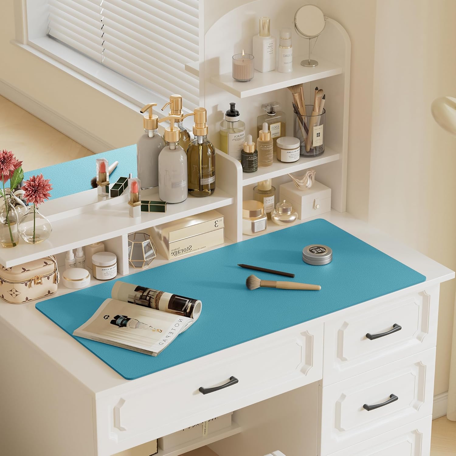 Aothia Faux Leather Desk Mat – Large Mouse Pad, Non-Slip PU Leather Blotter, Waterproof Writing Surface for Office and Home (Turquoise, 47.2" x 23.6")