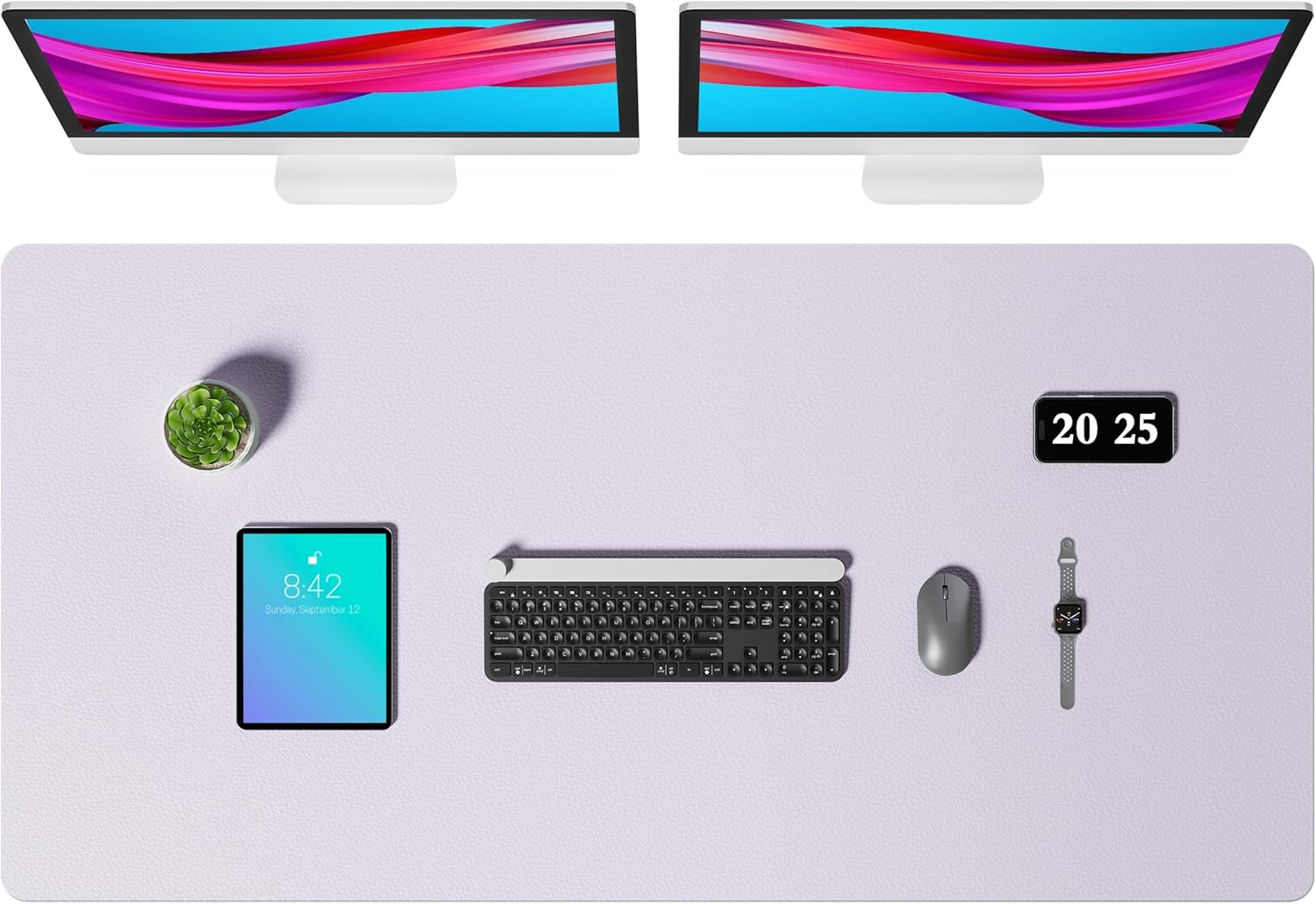 Aothia Faux Leather Desk Mat – Large Mouse Pad, Non-Slip PU Leather Blotter, Waterproof Writing Surface for Office and Home (Soft Lavender, 47.2" x 23.6")