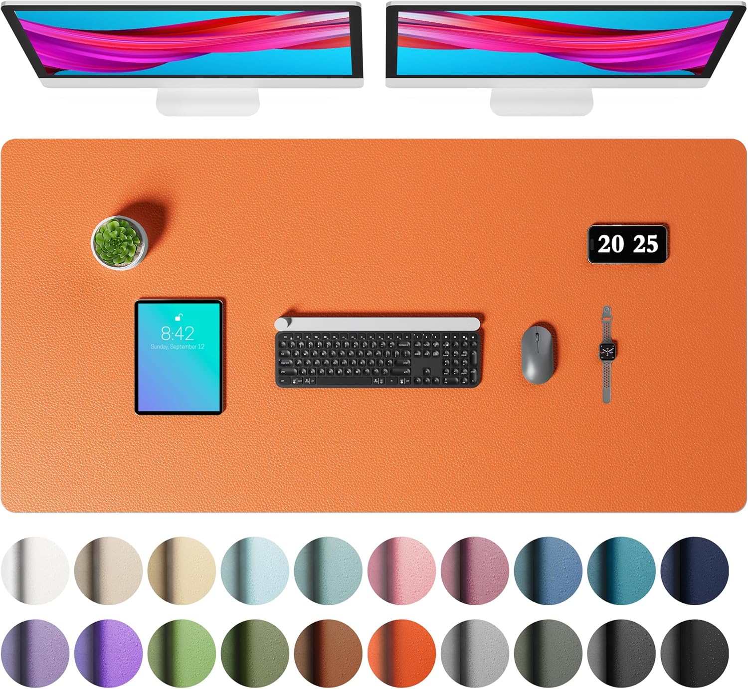 Aothia Faux Leather Desk Mat – Large Mouse Pad, Non-Slip PU Leather Blotter, Waterproof Writing Surface for Office and Home (Orange, 47.2" x 23.6")