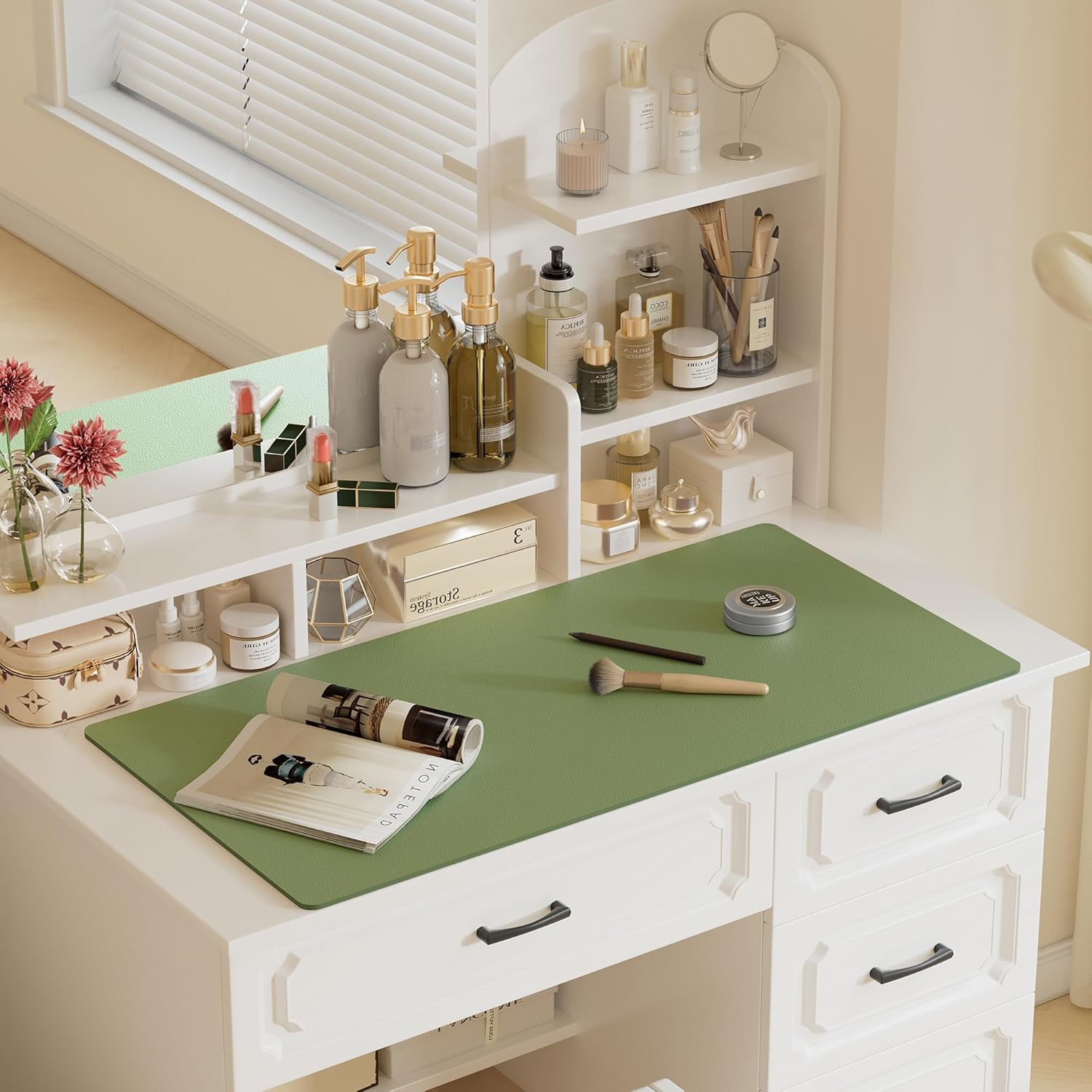 Aothia Faux Leather Desk Mat – Large Mouse Pad, Non-Slip PU Leather Blotter, Waterproof Writing Surface for Office and Home (Olive Green, 47.2" x 23.6")