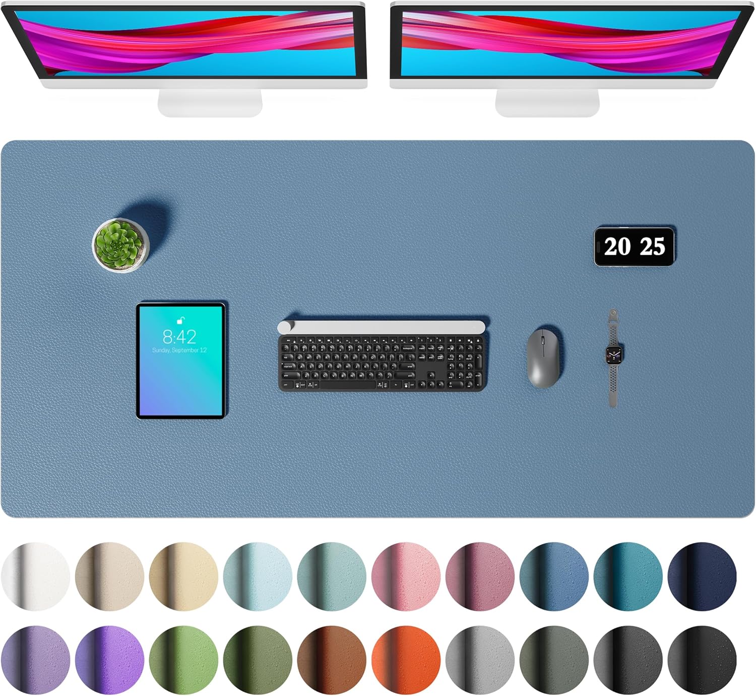 Aothia Faux Leather Desk Mat – Large Mouse Pad, Non-Slip PU Leather Blotter, Waterproof Writing Surface for Office and Home (Denim Blue, 47.2" x 23.6")