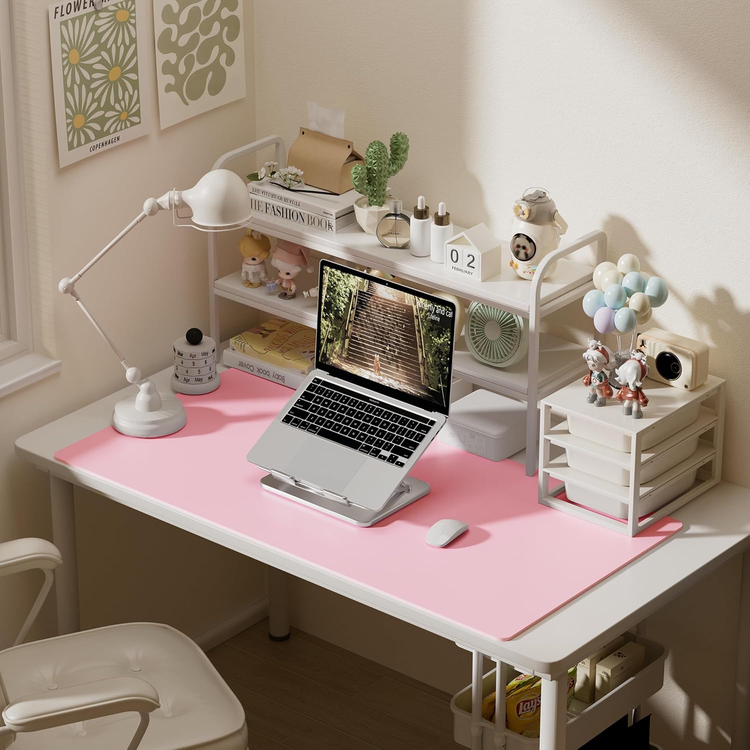 Aothia Faux Leather Desk Mat – Large Mouse Pad, Non-Slip PU Leather Blotter, Waterproof Writing Surface for Office and Home (Fairy Pink, 47.2" x 23.6")