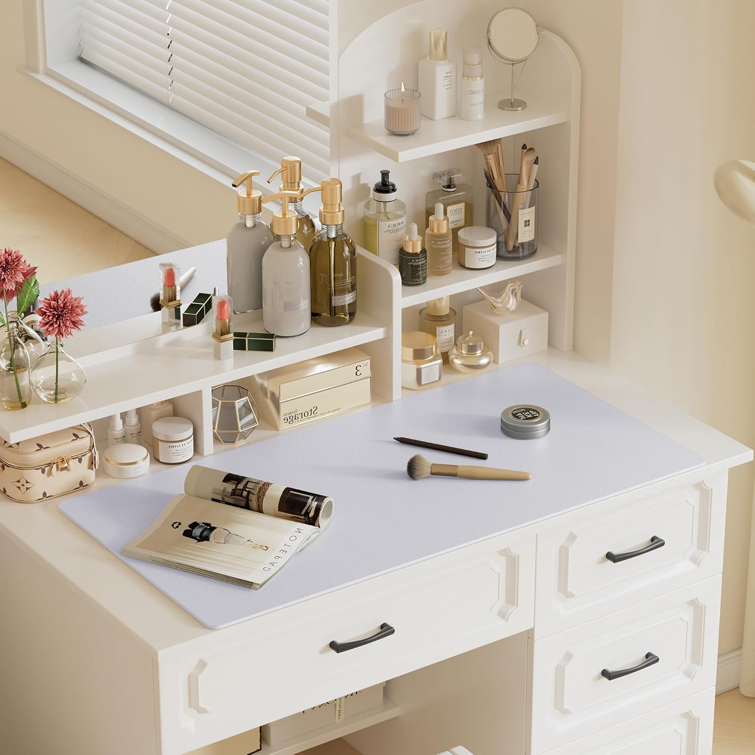 Aothia Faux Leather Desk Mat – Large Mouse Pad, Non-Slip PU Leather Blotter, Waterproof Writing Surface for Office and Home (Smoky Lavender, 47.2" x 23.6")