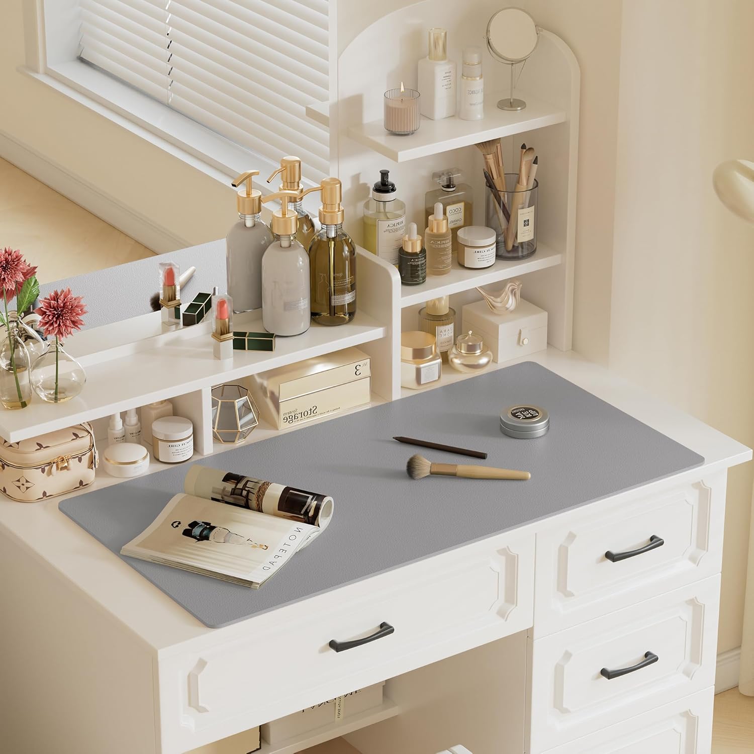 Aothia Faux Leather Desk Mat – Large Mouse Pad, Non-Slip PU Leather Blotter, Waterproof Writing Surface for Office and Home (Light Grey, 47.2" x 23.6")