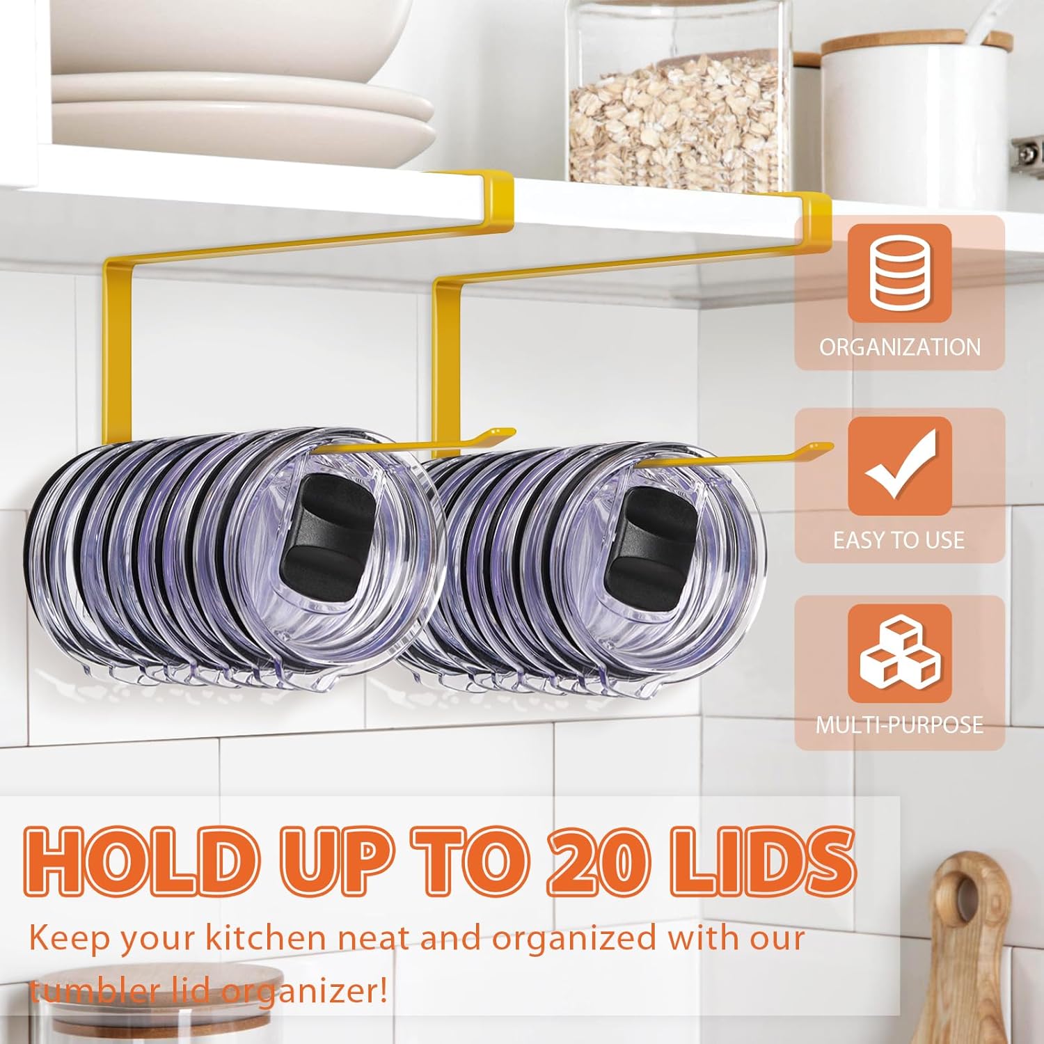 - Hold Up to 20 Lids: 2 PCS Package! Our cup lid holder storage is capable of accommodating up to 20 tumbler lids(can not store straw lids). The Tumbler lid organizer hook perfectly matches drinking tumbler lids' sizes and brands. Maximizing your need for kitchen organization space.