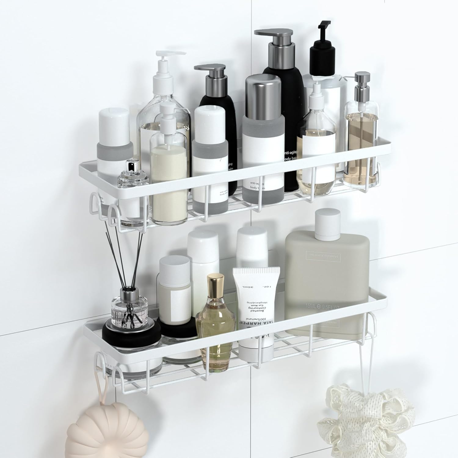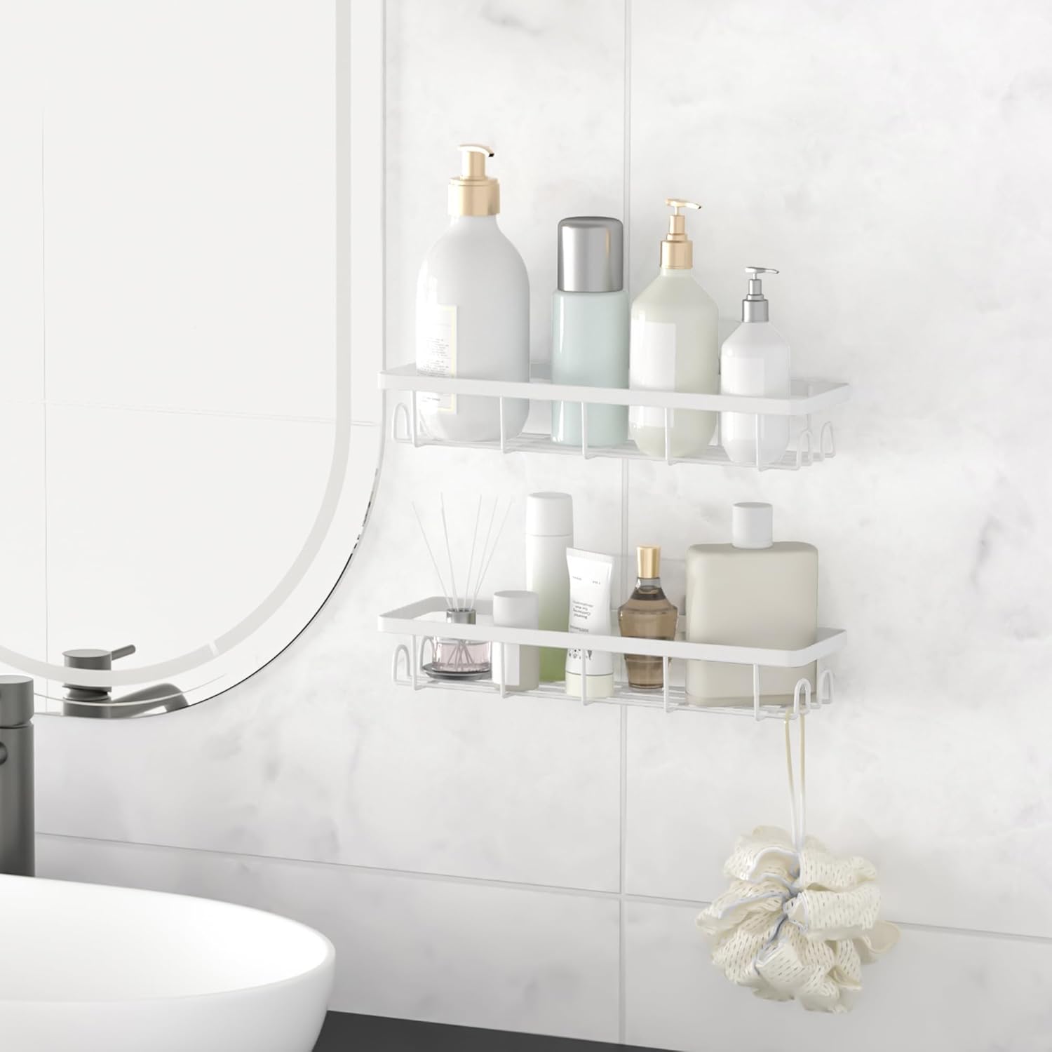 Shower Caddy Organizer with Hooks,Self Adhesive Bathroom Shelves,No Drilling Bathroom Organizers and Storage,Perfect for RV, Apartment, Home Decor,2 Pack White