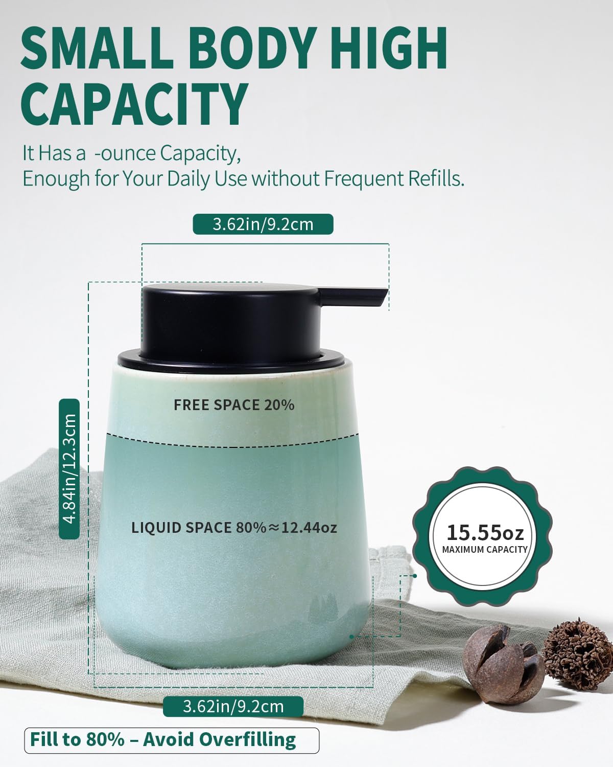 - Ceramic Hand Soap Dispenser: Hand soap foam dispenser is made from premium ceramic, lead-free, safe to fill with variety of daily use liquids and is durable and easy to clean, adding elegance and convenience to your home