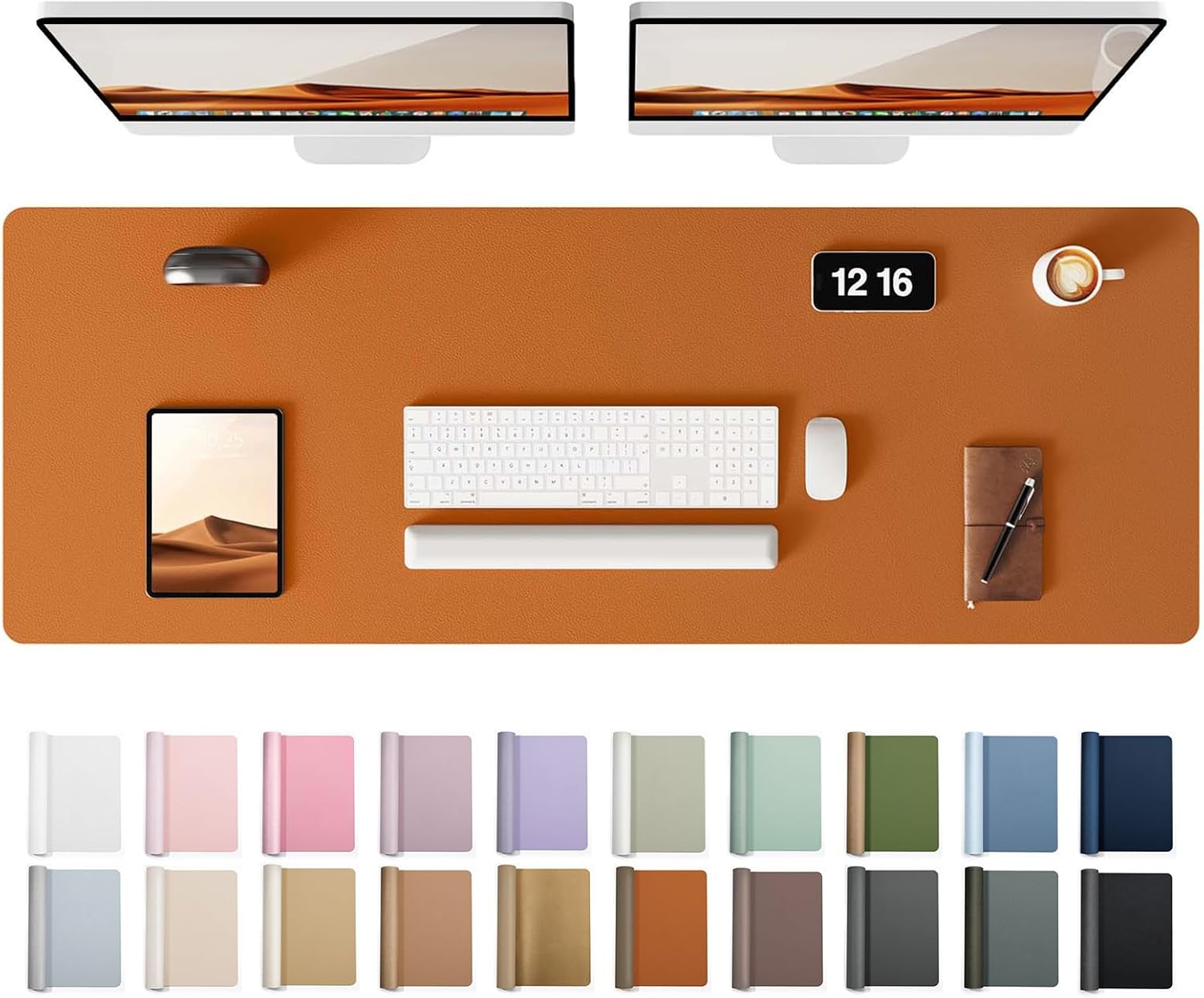 - DESK PROTECTOR: Durable PU Leather material adapted, which can protect your desk from scratches, stains, spills, heat and scuffs. Multi-color provided, change your mode by change the working atmosphere. Surface can be used as a large mouse pad, comfortable resting surface for your hands while writing, typing, and using the mouse. A must have office or study supplies.