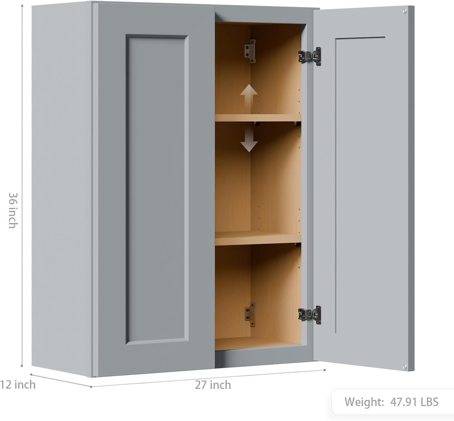 27 Inch Medicine Cabinet Wall Mounted, Solid Wood Over The Toilet Storage Cabinet, Bathroom Organizer Cabinets with 2 Door & Shelves, Easy to Assemble for Laundry Room, Kitchen, Garage - Dark Gray