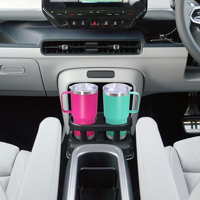 - Travel Coffee Tumbler Compatibility: The tapered 20oz travel coffee mug fits most car cup holders. Its 3.5" wide mouth allows easy cleaning, while the sturdy handle enhances portability for on-the-go lifestyles.