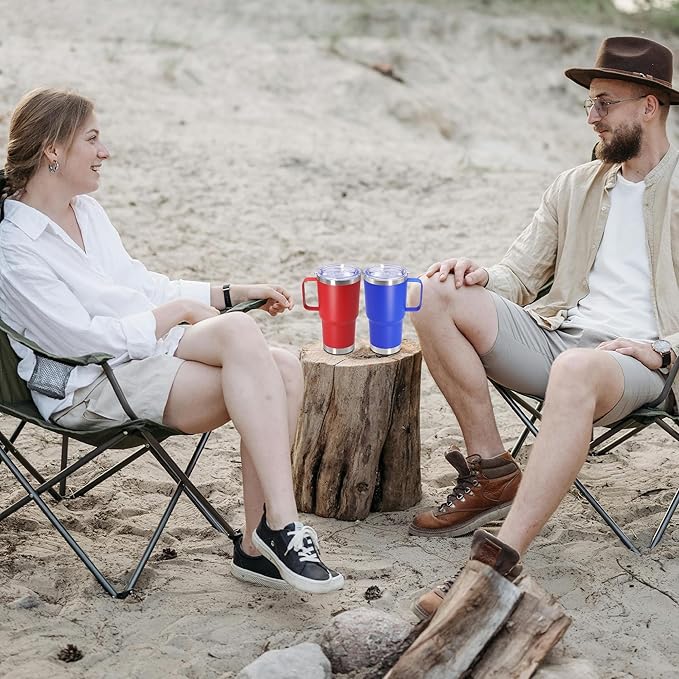 - Stainless Steel Tumblers with Handle: Crafted with thickened 304 (18/8) food-grade stainless steel, 20oz coffee mug features a sweat-proof matte powder-coated exterior and polished interior for sweat-proof, rust-proof, odorless. 360° welded handle ensures secure grip and durability.