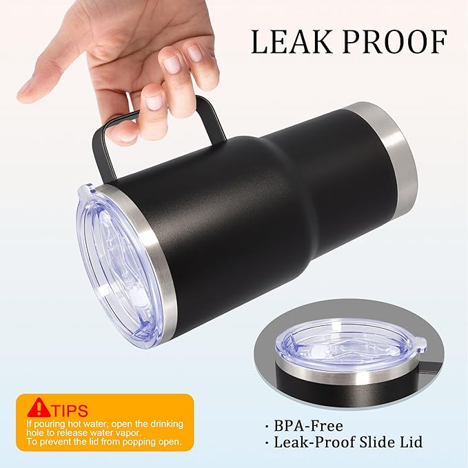 - Stainless Steel Tumblers with Handle: Crafted with thickened 304 (18/8) food-grade stainless steel, 20oz coffee mug features a sweat-proof matte powder-coated exterior and polished interior for sweat-proof, rust-proof, odorless. 360° welded handle ensures secure grip and durability.
