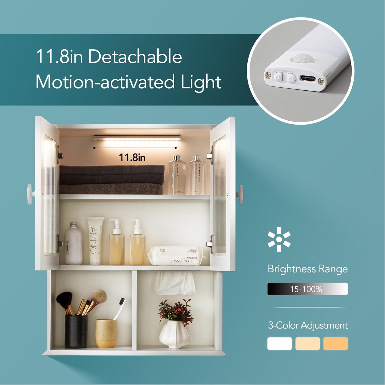 - 【Unique Motion-Activated Light】Equipped with a Type-C rechargeable sensor light, adjustable to three color temperatures (warm/neutral/cool) and 0-100% brightness, it can be installed anywhere inside the cabinet based on your preference to meet diverse needs.
