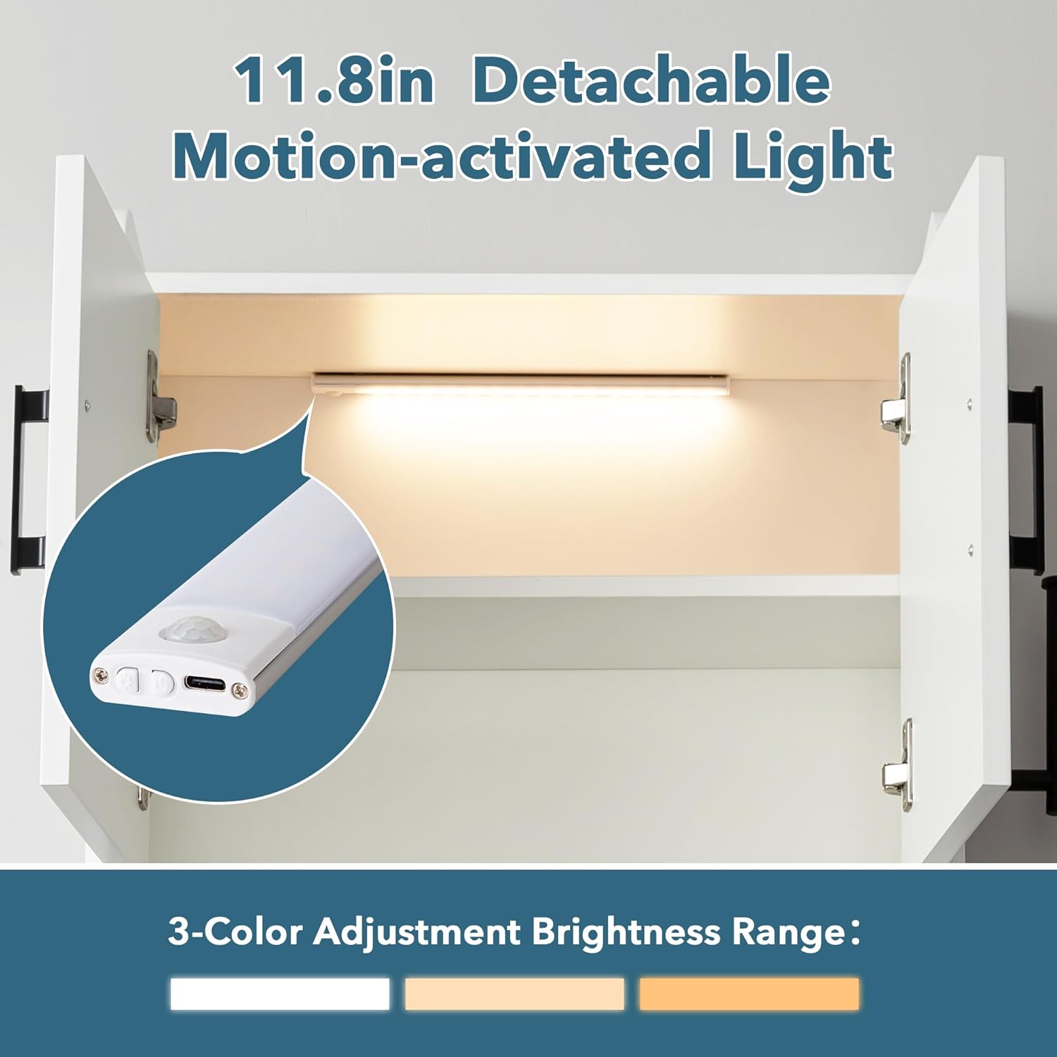 - 【Smart Motion-Sensor Light】Comes with a Type-C rechargeable sensor light adjustable to three color temperatures (warm/neutral/cool) and 0–100% brightness. It can be mounted anywhere inside the cabinet for customized lighting based on your preference.