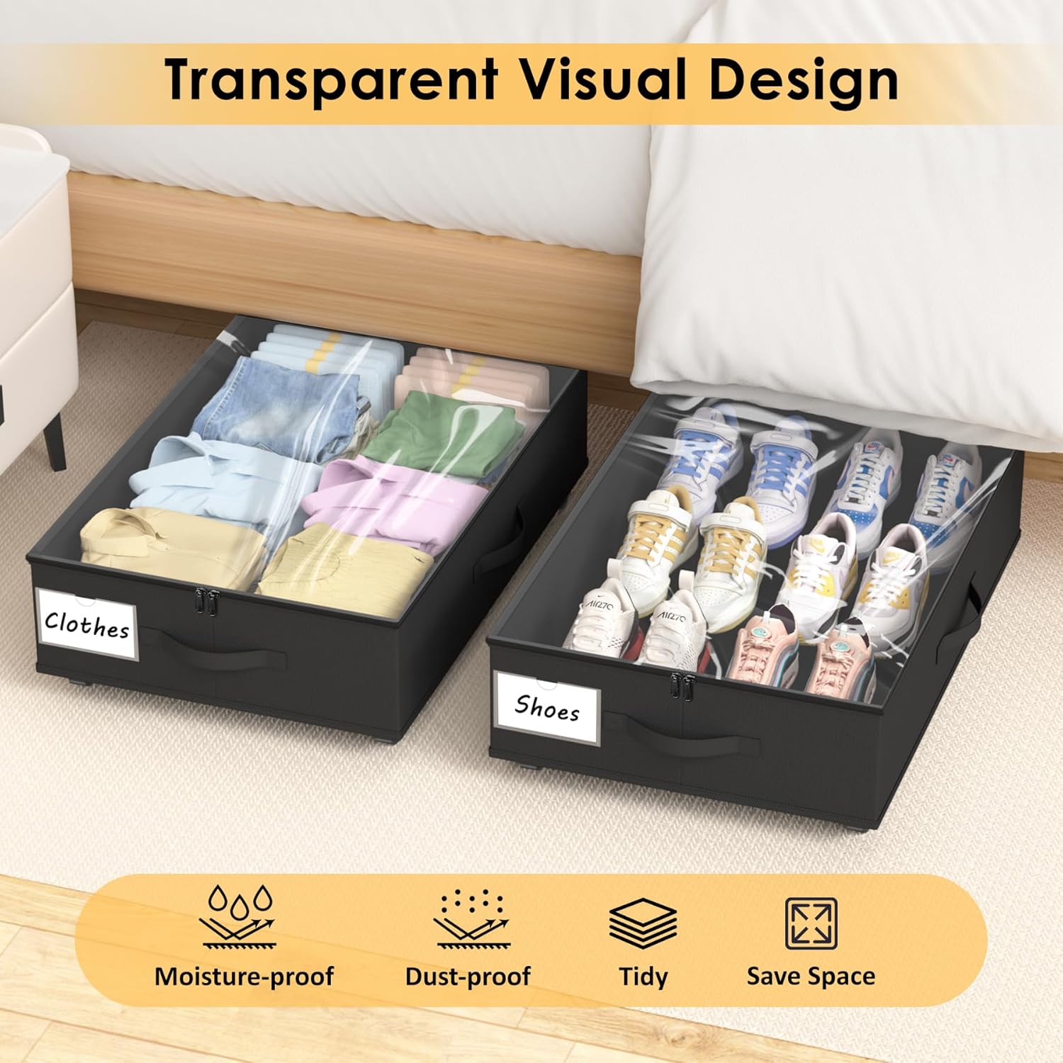 - Under Bed Storage with Clear Lid: Our under-bed storage features a clear PVC Lid window and DIY label slots, allowing you to see the contents at a glance. This saves you time and effort in quickly locating exactly what you need.