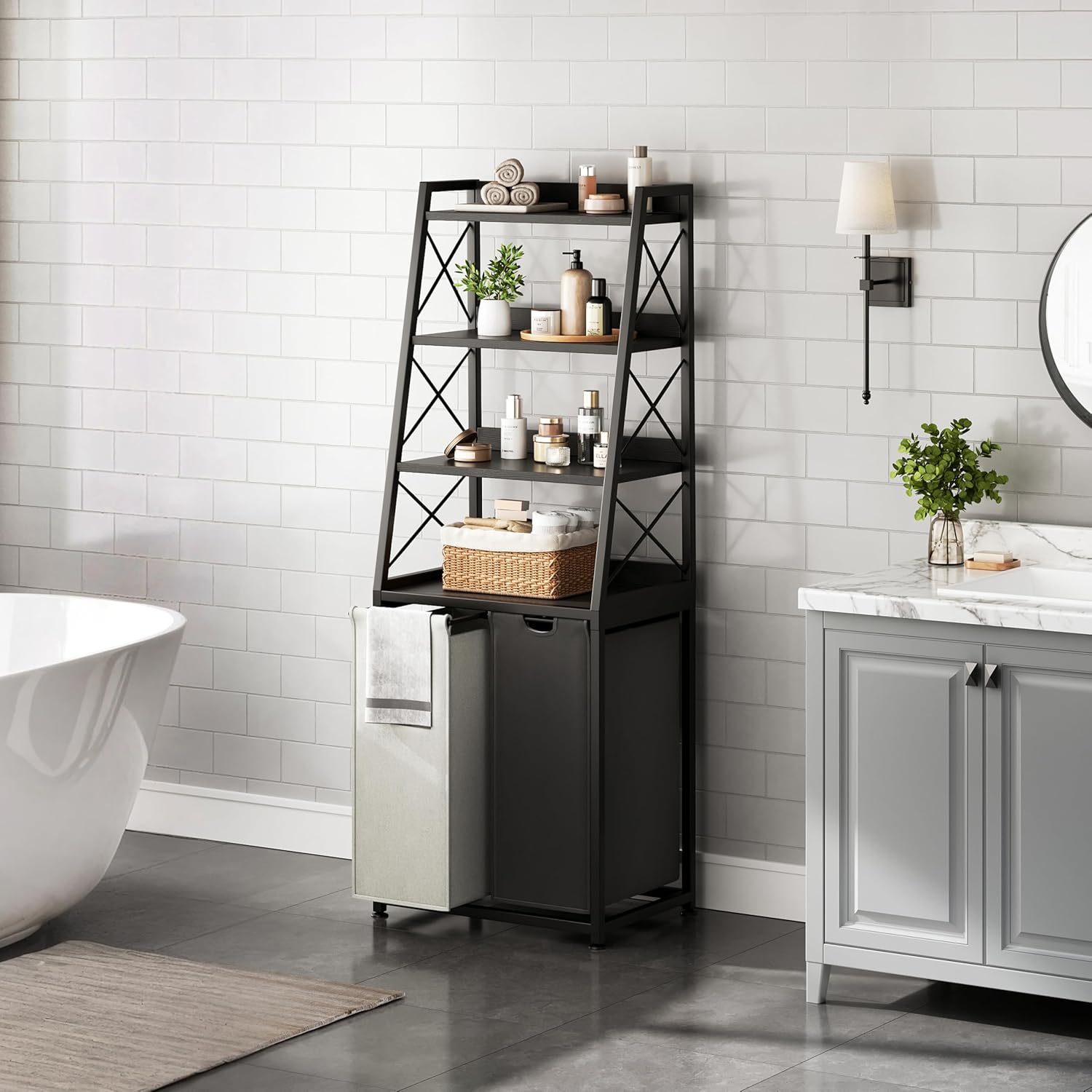 - Versatile and stylish design - The laundry Hamper with shelves features a detachable and pull-out design, and the four laundry bags can be removed from the shelves. It combines functionality with style, complementing the decor of any room, whether it's placed in the laundry room, bathroom, or bedroom. The vertical sorter design saves valuable floor space, allowing you to optimize your room layout