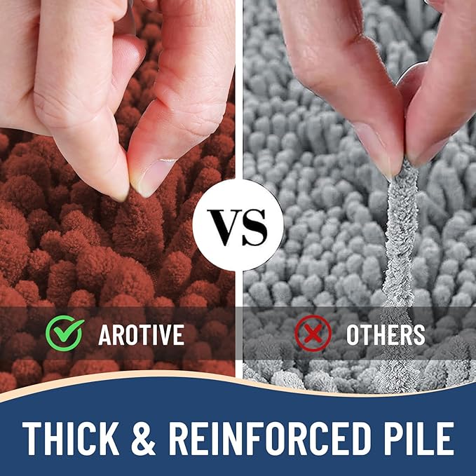 - Anti-Skid Backing: Arotive chenille bathroom rugs feature a non-slip bottom consisting of sturdy mesh PVC material that stops the bath mat from shifting and skidding. The middle layer is 4 mm memory foam, which can let you feel more comfortable when wrapping into the rugs. WARNING: Place bath mat on CLEAN DRY FLAT FLOOR ONLY. Water under bath rug can cause it to slip. Always keep the bottom of bath rug dry