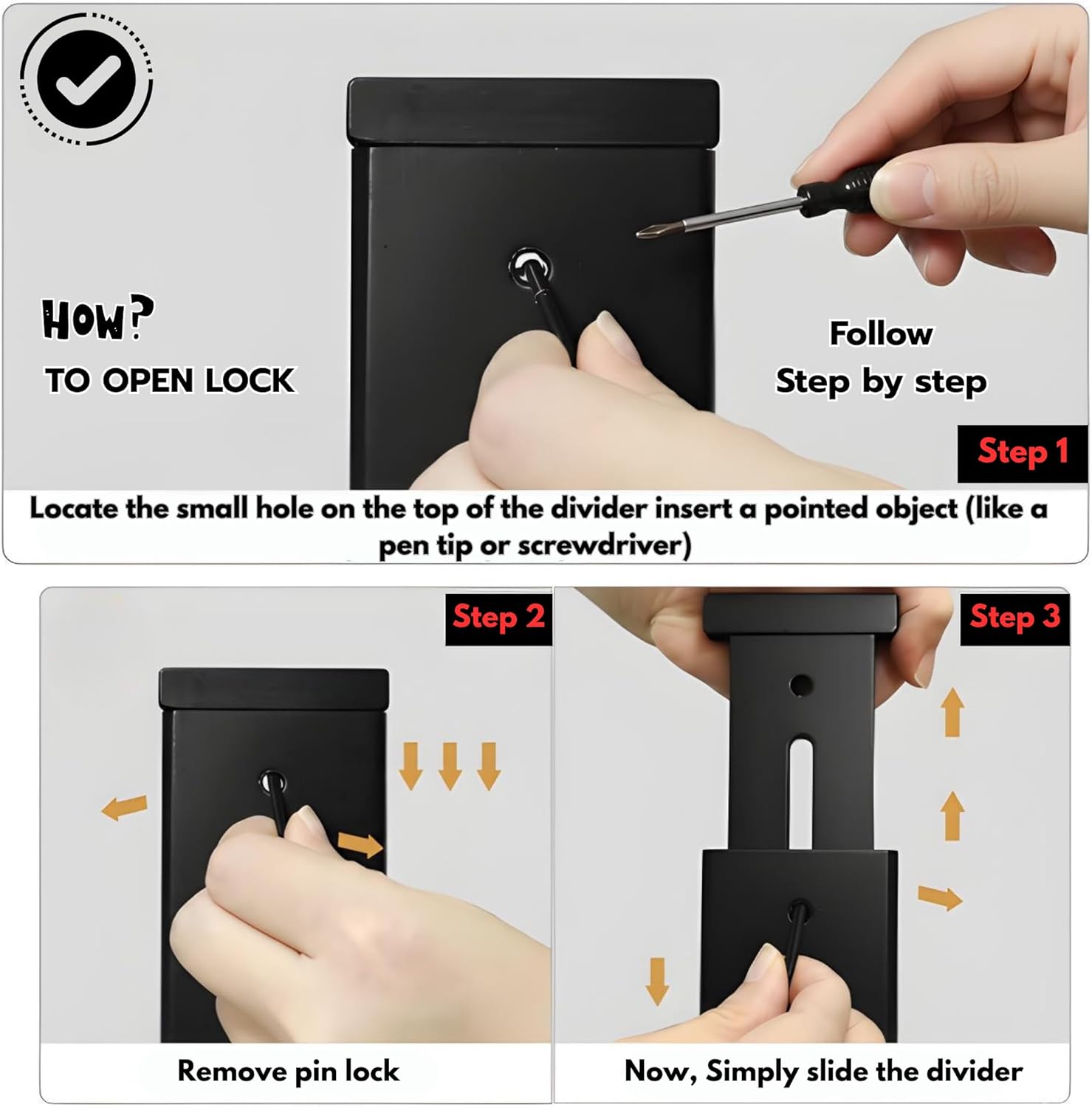 - 【Secure Locking Mechanism】 – Our spring-loaded design with lock function keeps dividers in place without shifting or slipping, even during daily use.