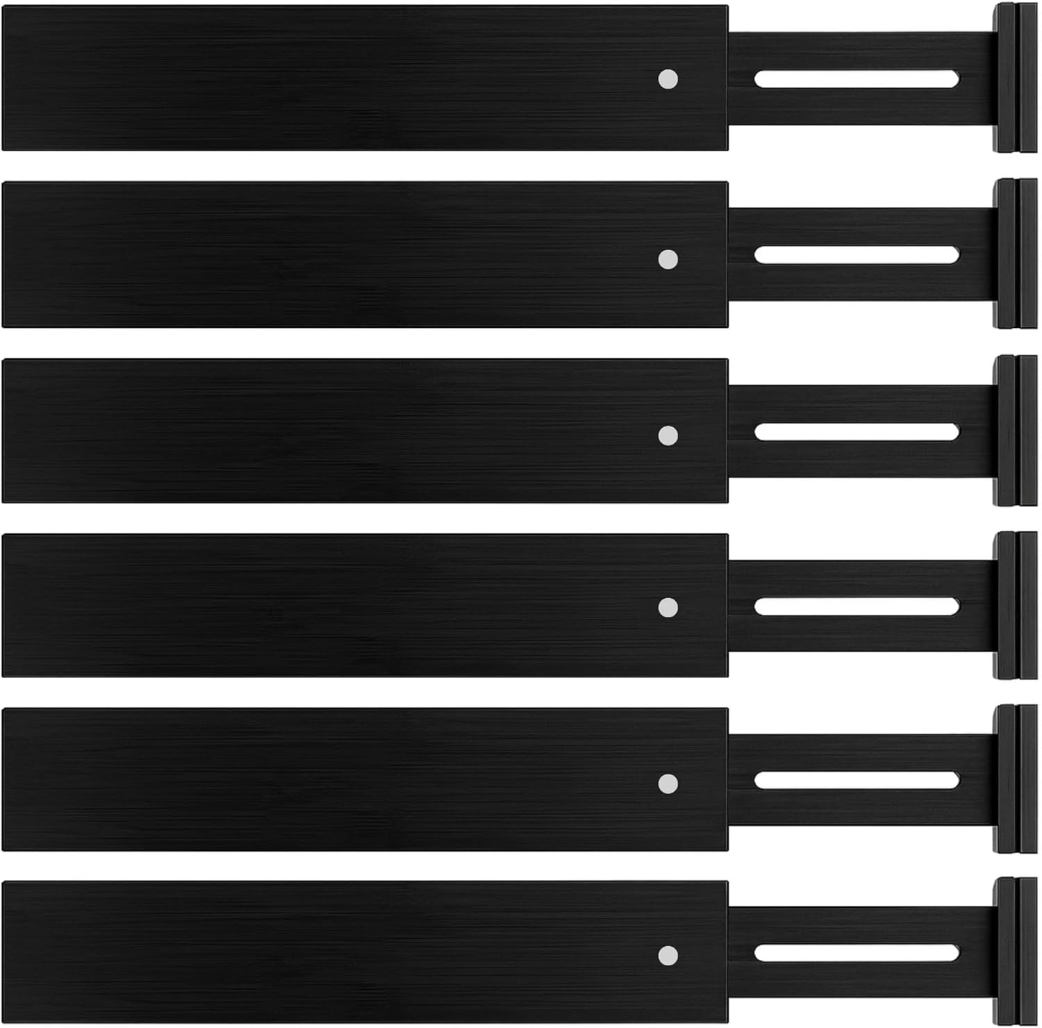 6-Pack Adjustable Bamboo Drawer Dividers, Expandable to 11.8-17.1 in with Center Lock & Non-Slip Pads, Spring-Loaded Kitchen Drawer Divider Organizer for Dresser, Bathroom, and Office