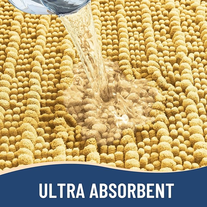 - Well Water Absorption: Designed with deep piles of ultra-soft microfiber shags, our shaggy bath rugs boast exceptional water absorption capabilities. The thick chenille fabric quickly and effectively absorbs water, stopping floors from becoming wet as you step out of the bath, shower, or work around the sink. Moisture is efficiently trapped within the mat's high pile, facilitating rapid and thorough drying. This ensures that your bath rug remains clean, fresh, and ready for further use