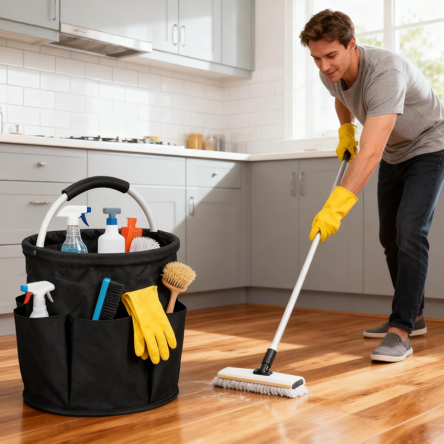 - Comfortable Carry Handle: This cleaning bag eatures an ergonomic EVA padded handle & sturdy aluminum collapsible handle for pain-free transport. Superior weight distribution ensures your cleaning kit with handle stays balanced and secure during use. Effortlessly carry heavy cleaning supplies from bathroom to garden without strain