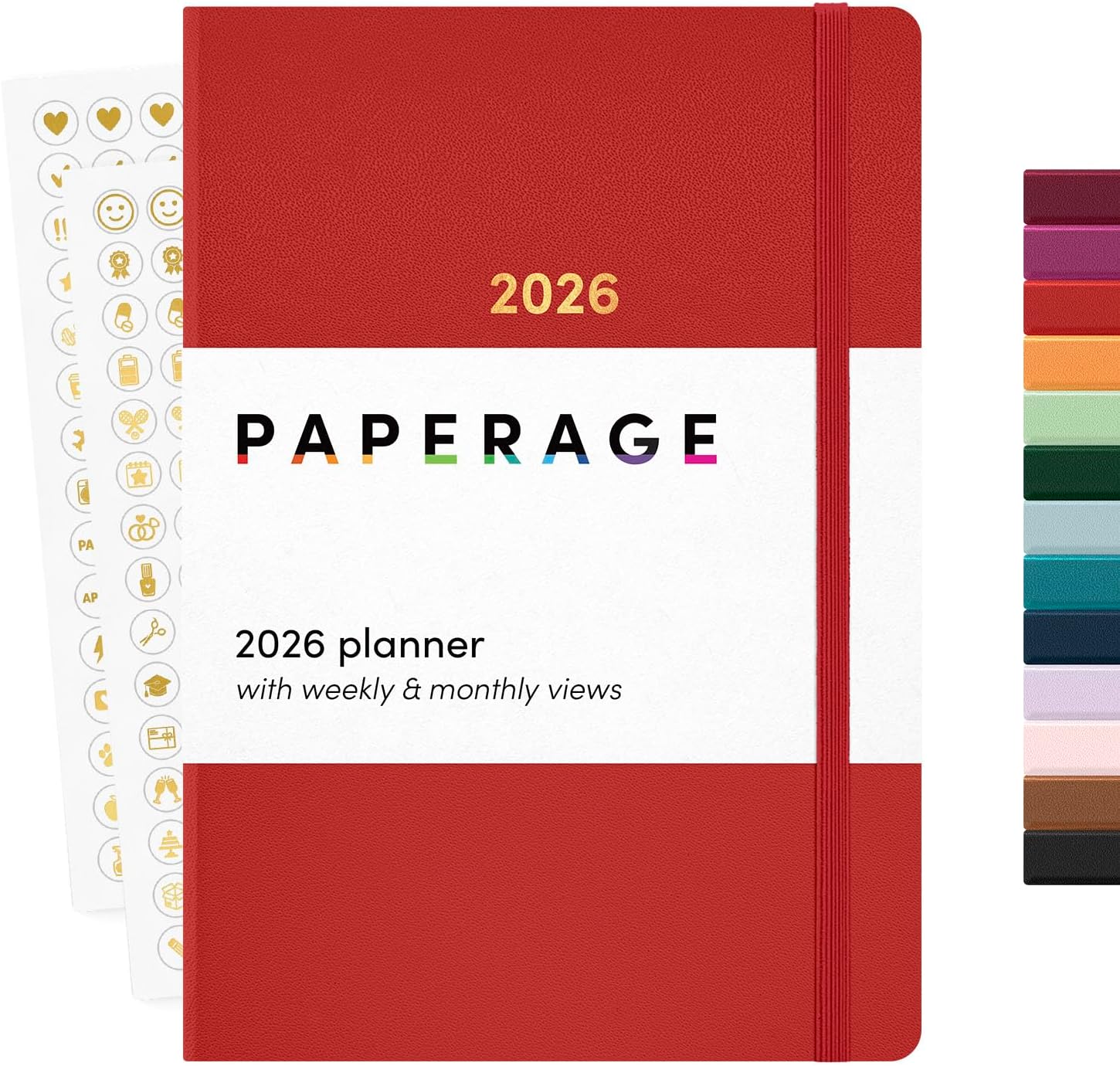 PAPERAGE 2026 Weekly & Monthly Planner, 12 Months (January 2026 - December 2026), 5.6 in x 8 in, Hardcover 2026 Planner with Weekly & Monthly Spreads, Note Pages, Stickers & Back Pocket – Red