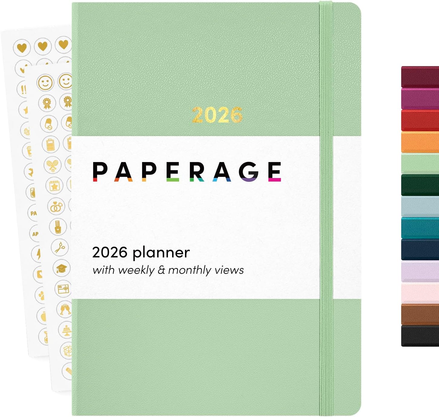 PAPERAGE 2026 Weekly & Monthly Planner, 12 Months (January 2026 - December 2026), 5.6 in x 8 in, Hardcover 2026 Planner with Weekly & Monthly Spreads, Note Pages, Stickers & Back Pocket – Sage Green