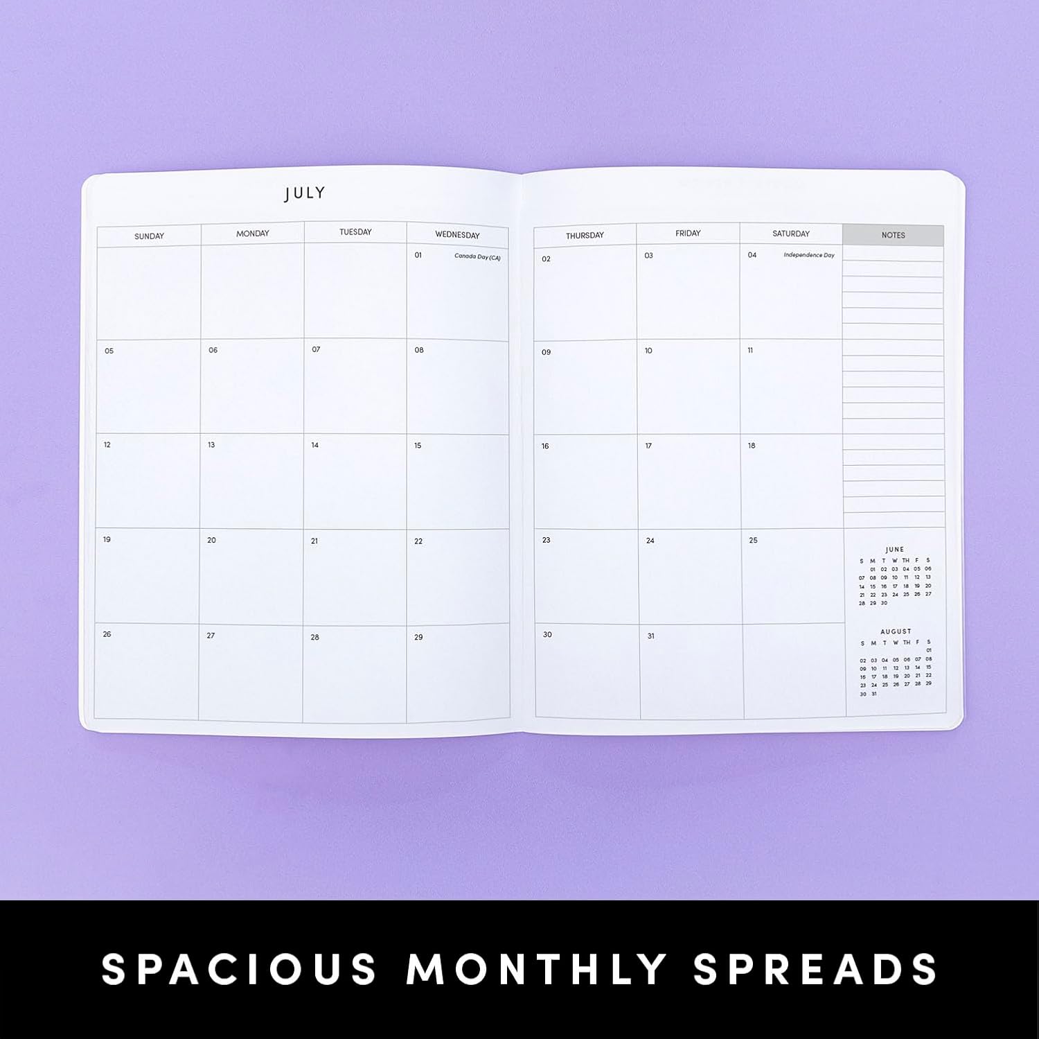 - SPACIOUS MONTHLY VIEWS: This monthly planner features large monthly spreads to comfortably fit all your plans and appointments, a yearly spread with holidays to keep you organized, plus extra monthly review pages ideal for note taking or journaling.