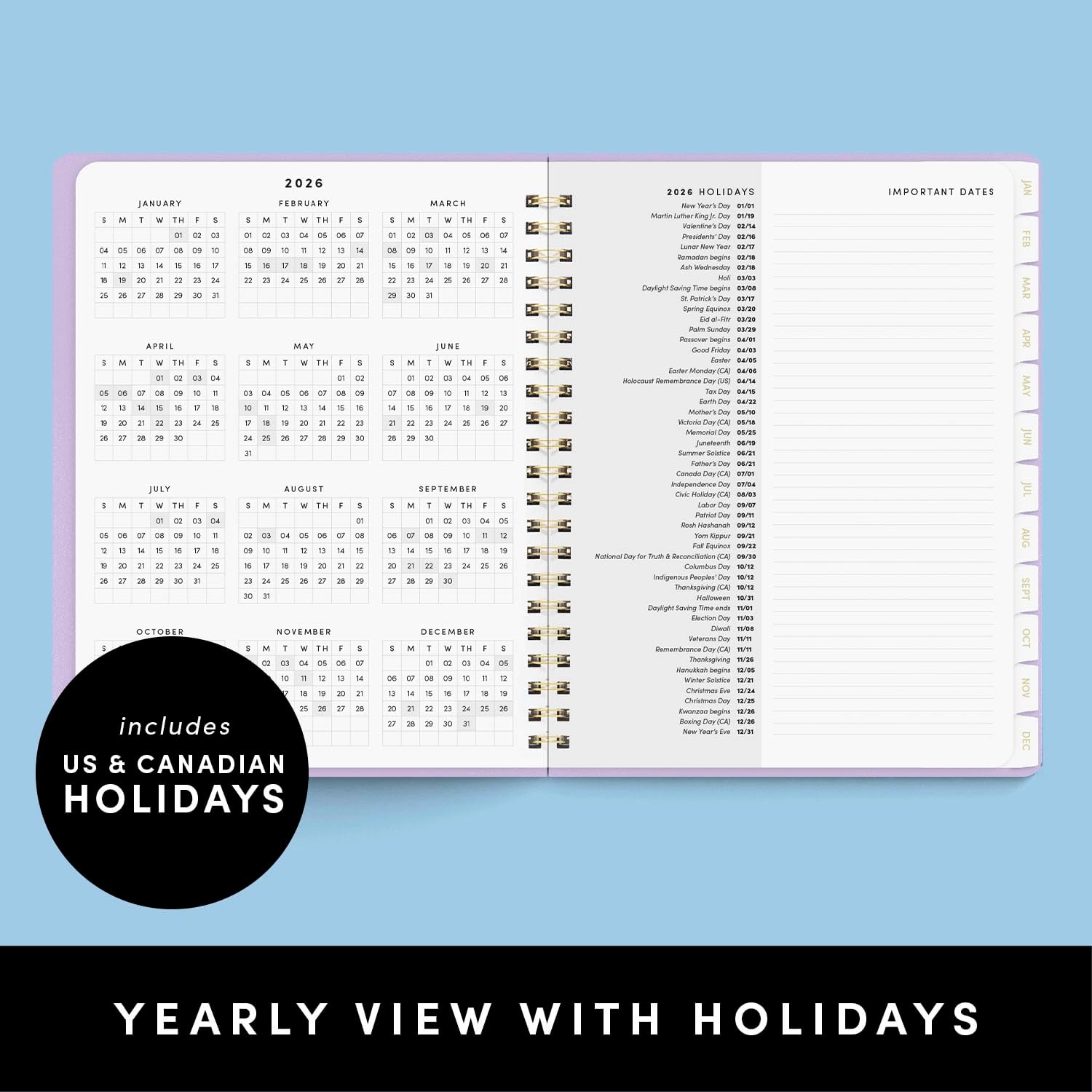 - SUPERIOR CONSTRUCTION: Made with style & efficiency in mind, our planner features a lay-flat design with easy-turn pages, laminated monthly tabs for quick access, plus handy bonus pages for yearly planning, note taking, important dates & holidays.