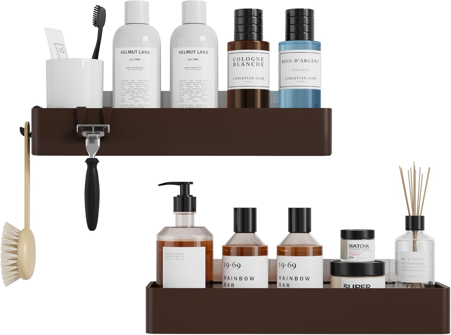 Kitsure Shower Caddy - 2 Pack Adhesive Shower Organizer, Rustproof Metal Shelves, No-Drill Bathroom Organizers and Storage, Brown, XX-Large