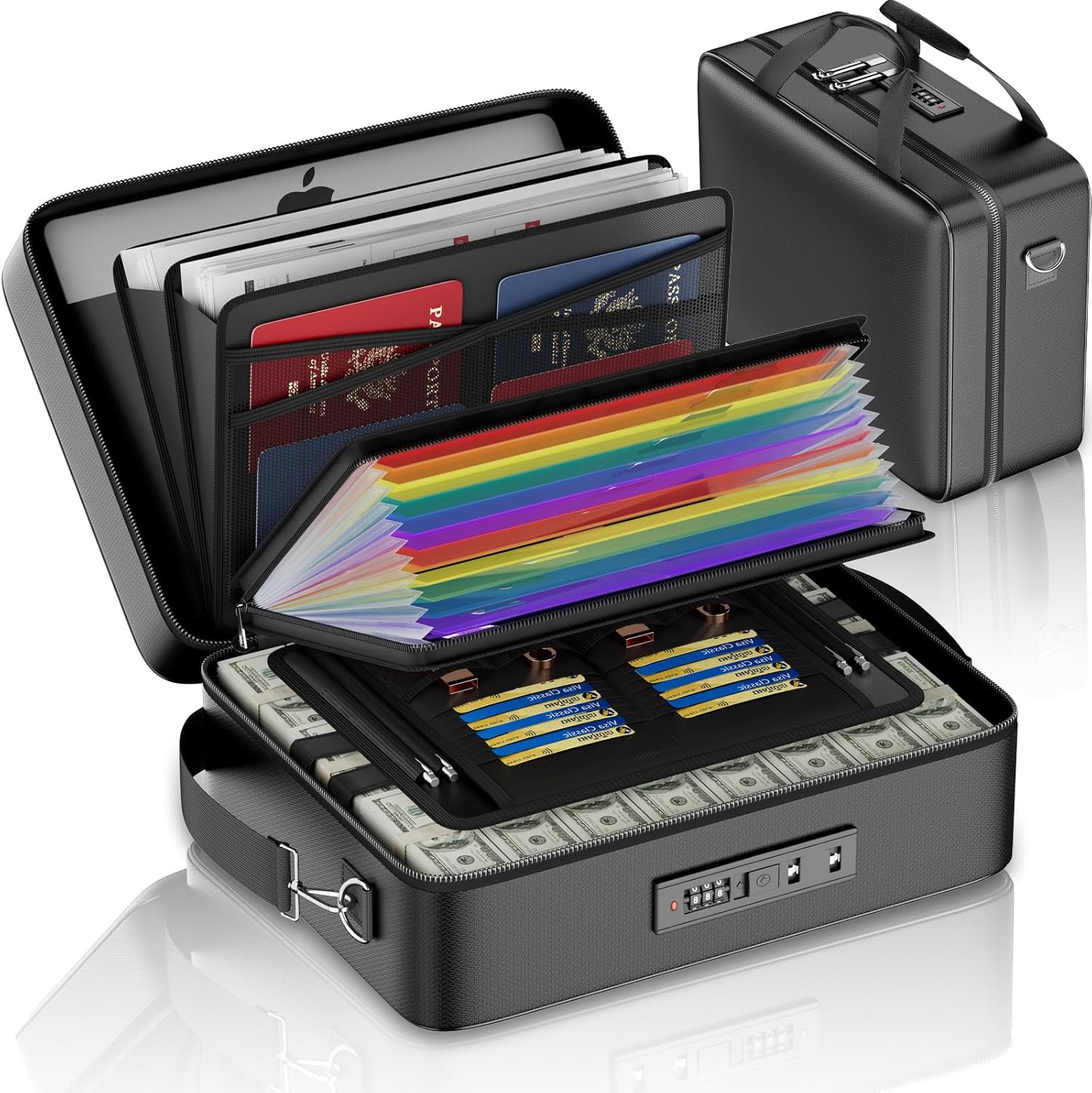 - Total Peace of Mind: Our fireproof document box offers critical extra protection against fire, water, and impacts—safeguarding your irreplaceable valuables. If you need to keep important things in an easy to grab and carry “go bag” this would be great. Much more portable than a standard classic lock box or safe. This would also be useful if you need to store valuable while traveling, in your car, or away from your home. Its biggest feature is the portability of the added security
