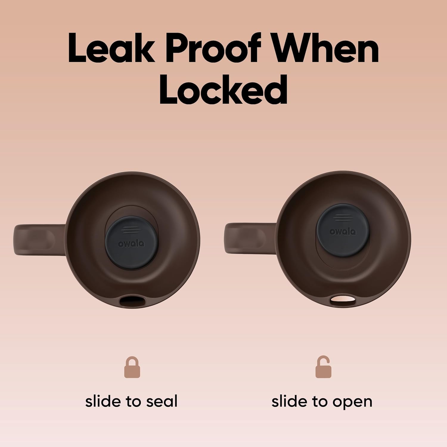 Owala SmoothSip Slider Stainless Steel Insulated Travel Mug with handle, 100% Leak Proof, For Hot and Cold Drinks, Travel Friendly with Sliding Lock Lid, 24 oz, BPA Free, Leak Proof, Cozy Cocoa