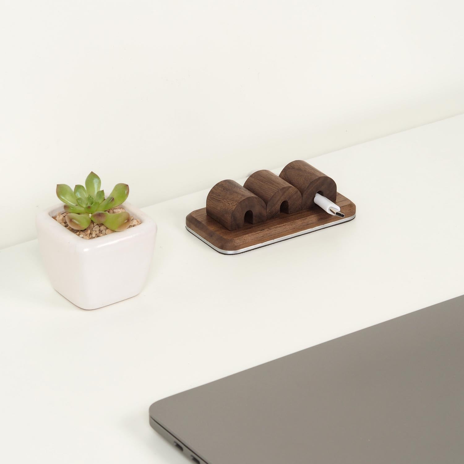 - Premium Walnut Wood Design – Crafted from natural walnut wood with a durable metal base, this cable organizer adds a touch of elegance and durability to any workspace.