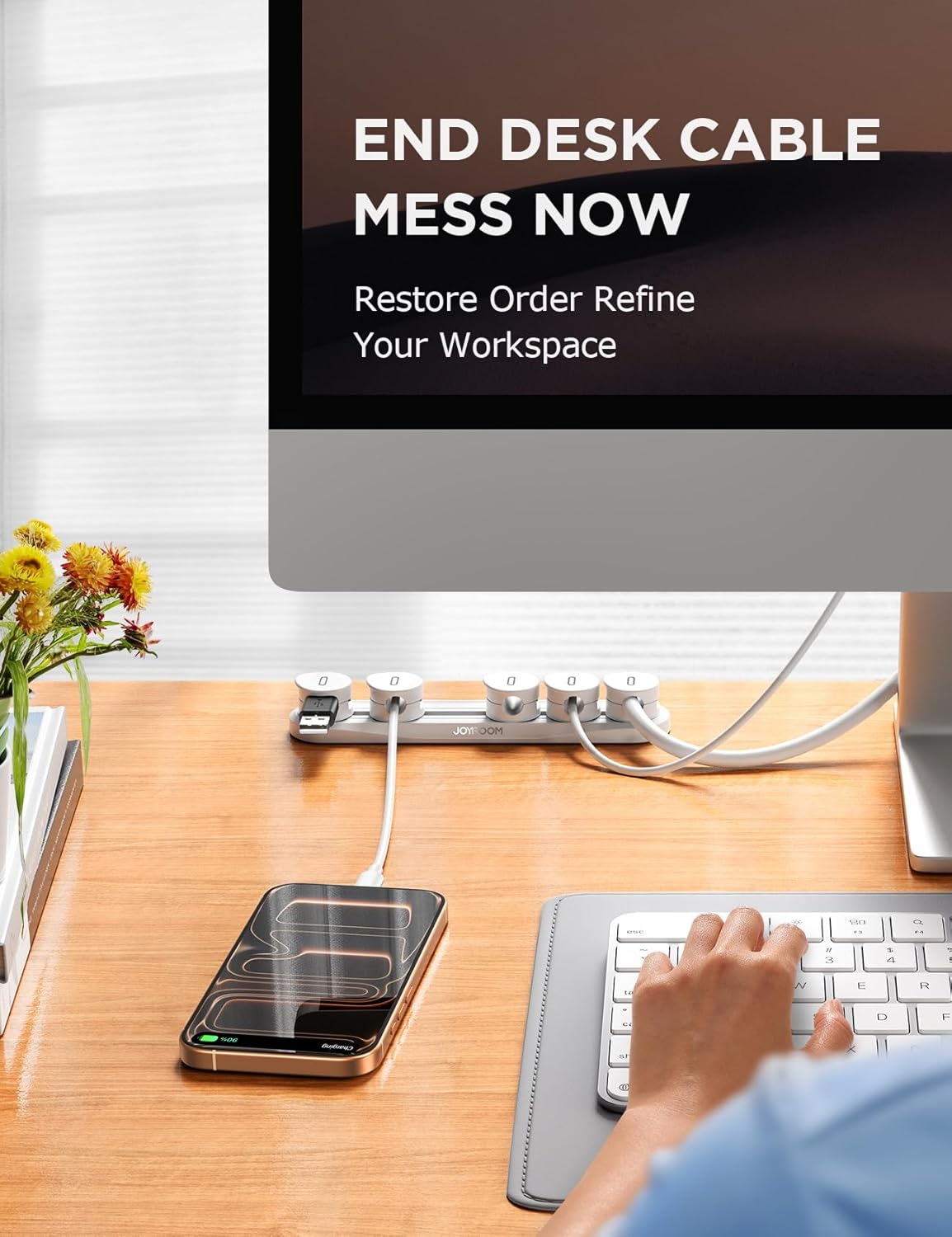- JOYROOM 5-in-1 Magnetic Cable Management: Engineered with advanced N50 magnetic clasps, JOYROOM magnetic cable clips secure cables precisely without tangles. The unified sliding track organizes more than five cords simultaneously, eliminating clutter with permanent cord management. Achieve a streamlined workspace with effortless access to charging cables, wired earbuds, and peripherals.