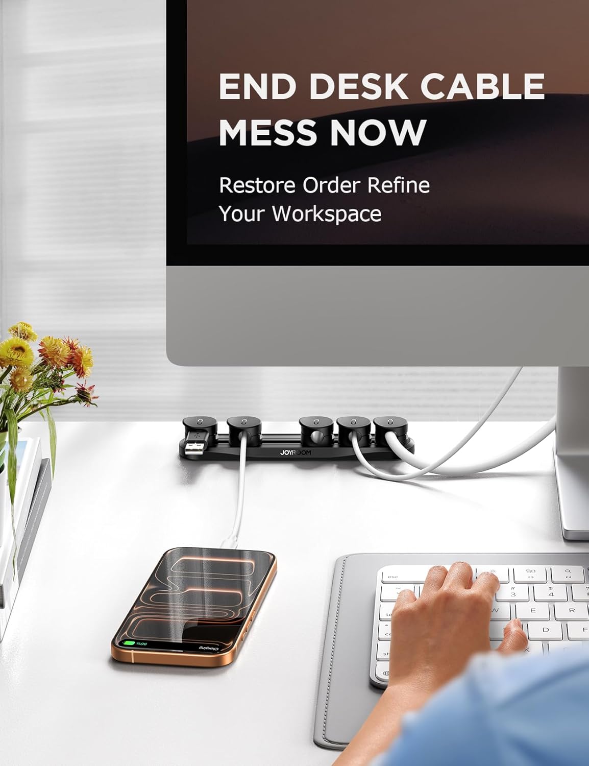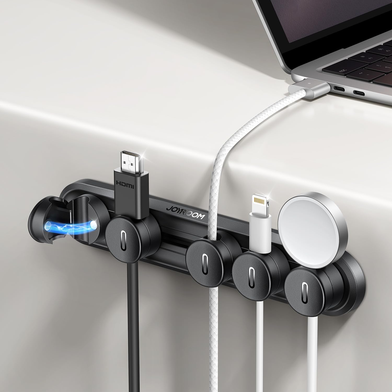 - JOYROOM 5-in-1 Magnetic Cable Management: Engineered with advanced N50 magnetic clasps, JOYROOM magnetic cable clips secure cables precisely without tangles. The unified sliding track organizes more than five cords simultaneously, eliminating clutter with permanent cord management. Achieve a streamlined workspace with effortless access to charging cables, wired earbuds, and peripherals.