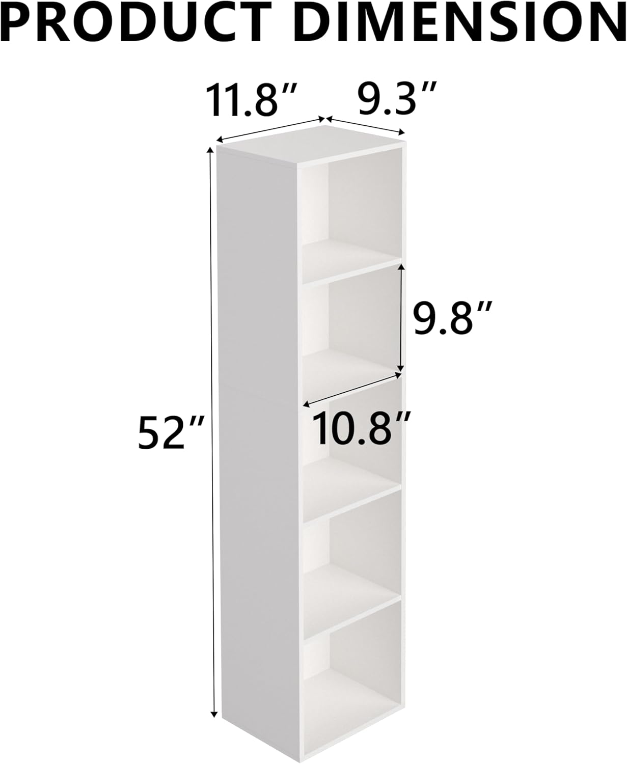 Wooden 5 Cube Storage Organizer, 5 Tier Storage Cubes Storage Display Cubby, 52 Inch Tall Versatile Cubes Shelf and Cubby Organizer for Any Space (White, 5 Cube-W(11.8inch)