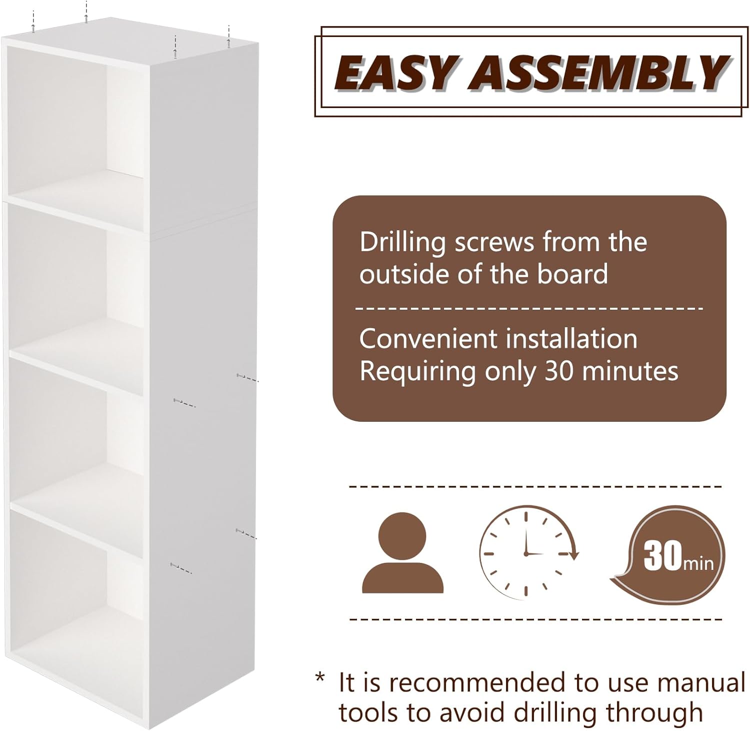 Wooden 4 Cube Storage Organizer, 4 Tier Storage Cubes Storage Display Cubby, 42 Inch Tall Versatile Cubes Shelf and Cubby Organizer for Any Space (White, 4 Cube-W(11.8inch)
