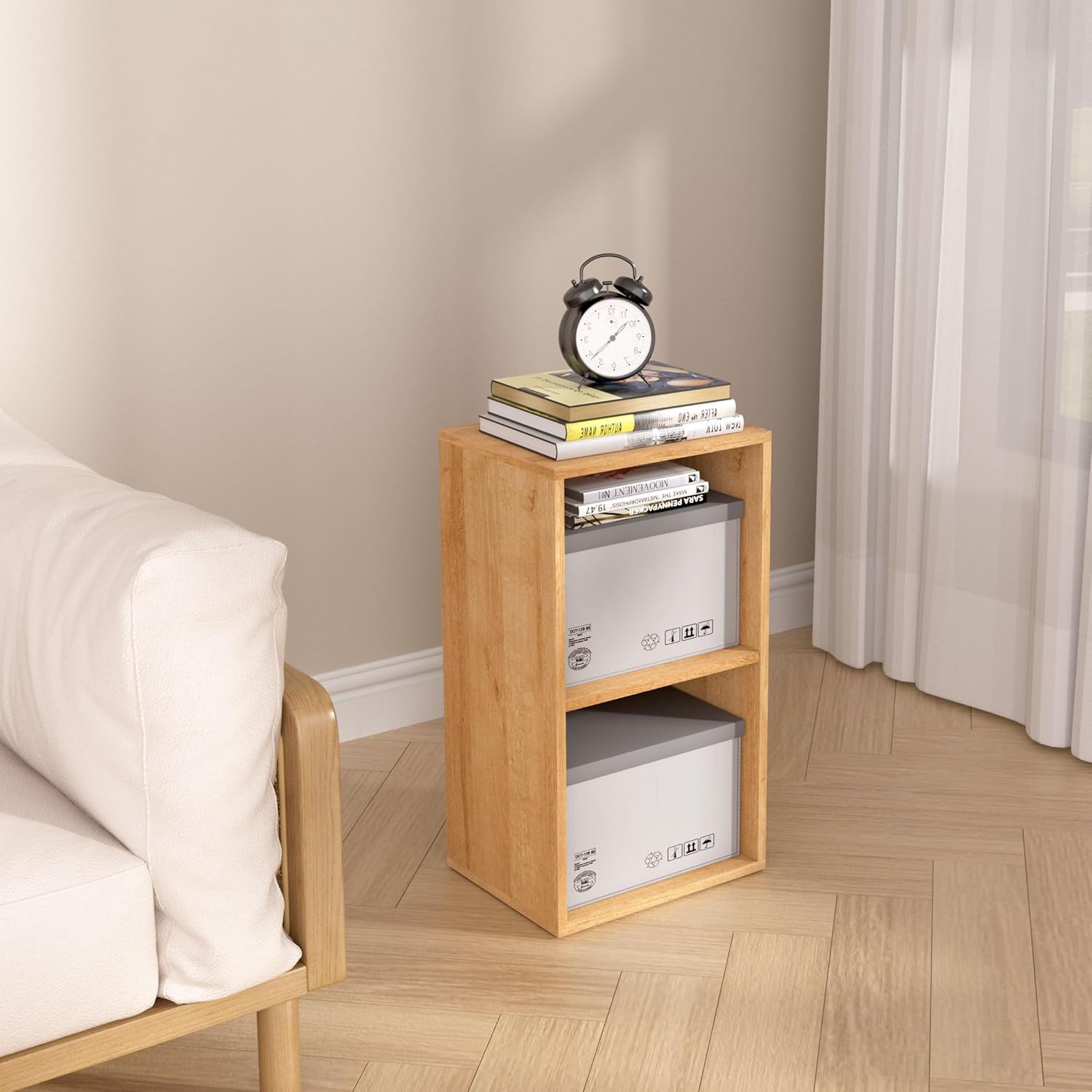 Wooden 2 Cube Storage Organizer, 2 Tier Storage Cubes Storage Display Cubby, Versatile Cubes Shelf and Cubby Organizer for Any Space (Oak, 2 Cube-W(11.8inch)