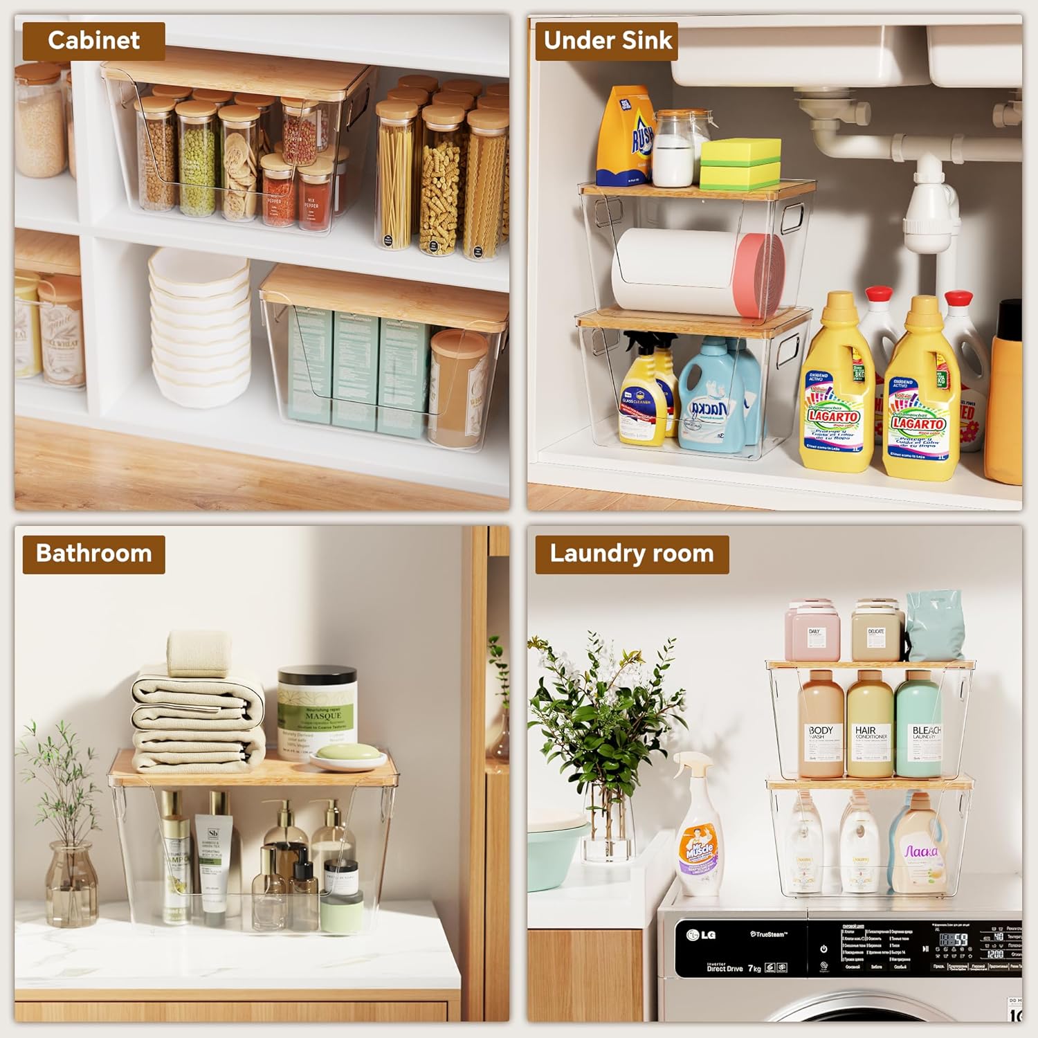 - Durable PET Material and Natural Bamboo Lid: Crafted from high-quality PET material, these organizers provide clear visibility and long-lasting durability. The natural bamboo lid is eco-friendly, BPA-free, and doubles as a cutting board, offering both style and safety for your storage needs.