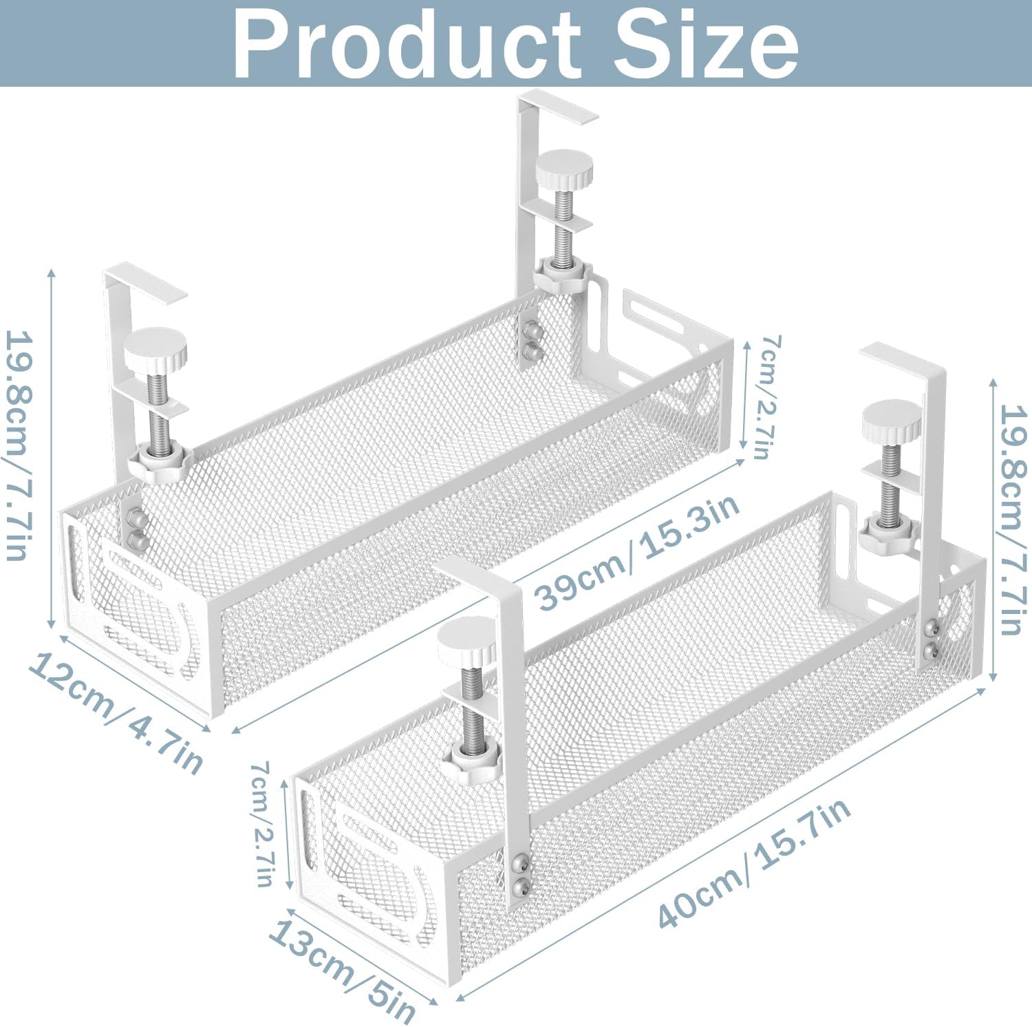 - 【Under Desk Cable Management Tray】Our cable management are suitable for the standing desk within 0.4" to 2" thick, and can withstand a weight of approximately 15 lbs. The cord organizer built-in non-slip rubber pads on the clamp to protect the desk surface from scratches. The desk accessories supports both inward and outward installation, you can easily change its position as needed.