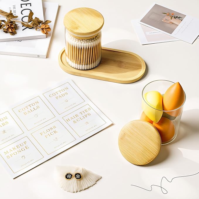 - Convenient Access: The Qtip holder bathroom set are transparent and feature a wide opening design, so the remaining quantity of items is clear at a glance, making access and replenishment easy. The anti-slip tray keeps the cotton round holder in one place, making the whole process of access and storage orderly. waterproof labels of 6 different types can help categorize the stored items.