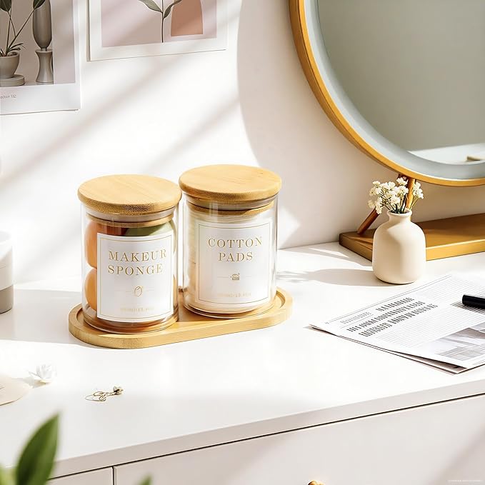 - Premium Material: The qtips holder is made of selected borosilicate glass, making it suitable for long-term repeated use. The double-painted waterproof bamboo lid comes with a sealing ring, which can effectively prevent dust and moisture, keeping the items inside the Q tip holder dry and clean. The tray is equipped with anti-slip pads, ensuring stability even when placed on a damp tabletop.