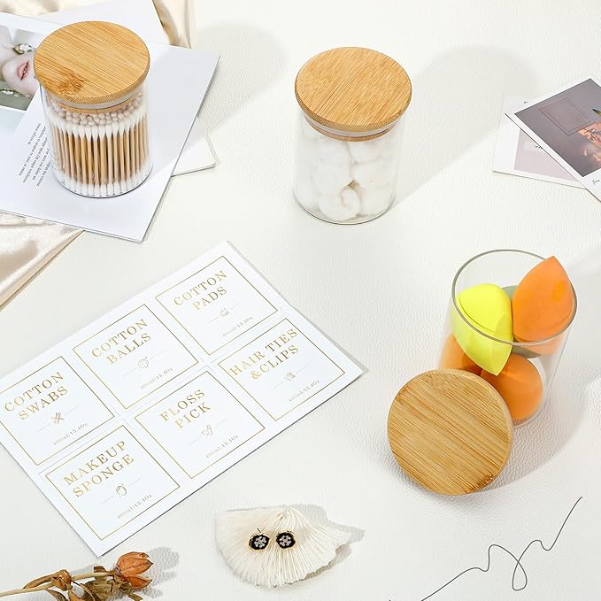 - Waterproof Label Stickers: Our cotton ball holder comes with 6 label stickers, making it easy for you to categorize and organize the items. The surface of the stickers is coated with a waterproof layer, so they are not easily affected by moisture or damaged. Cotton swab container are perfect for use in humid bathrooms and kitchens.