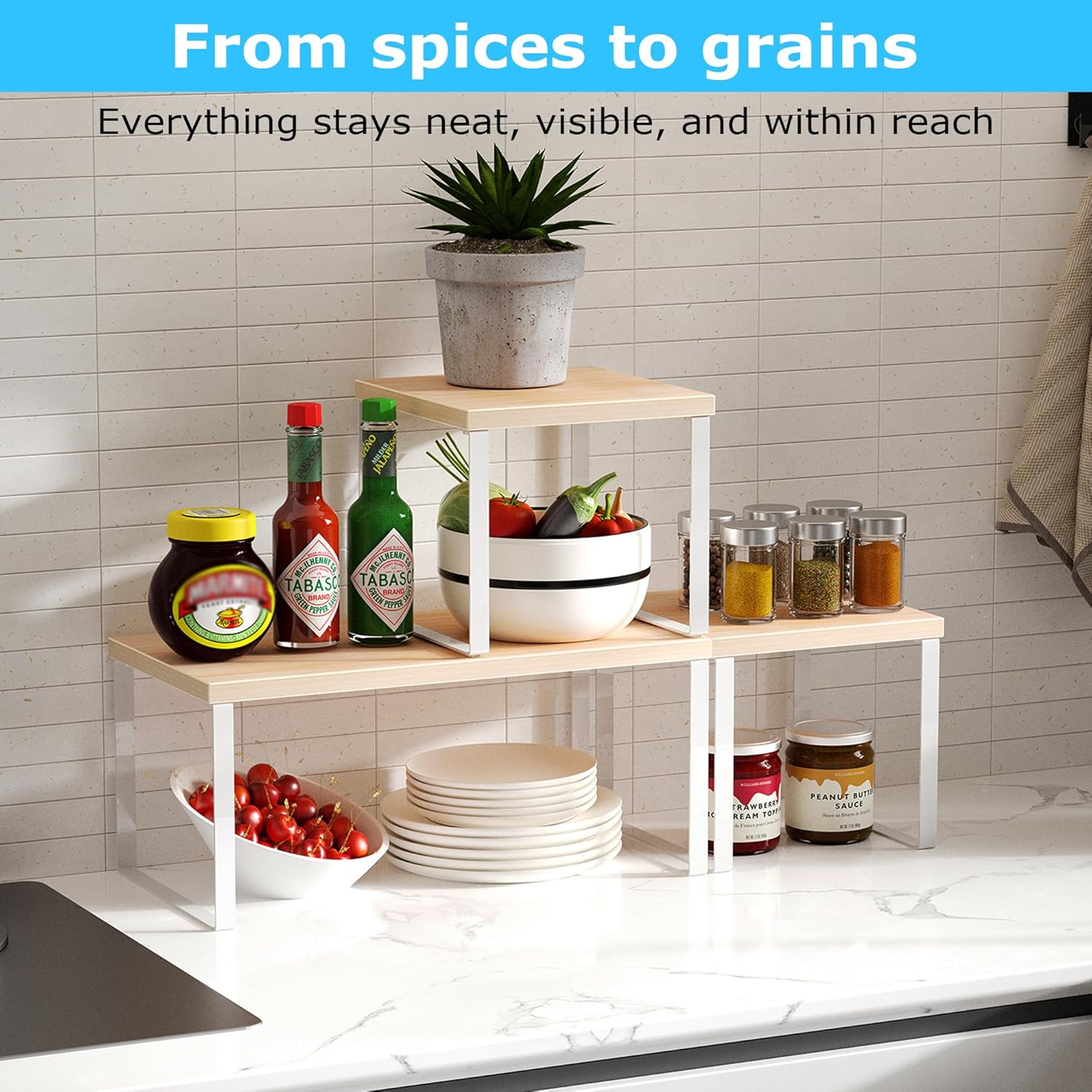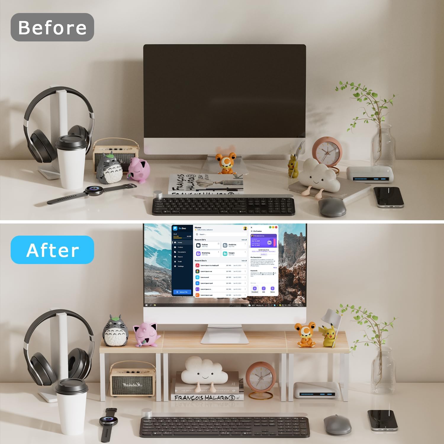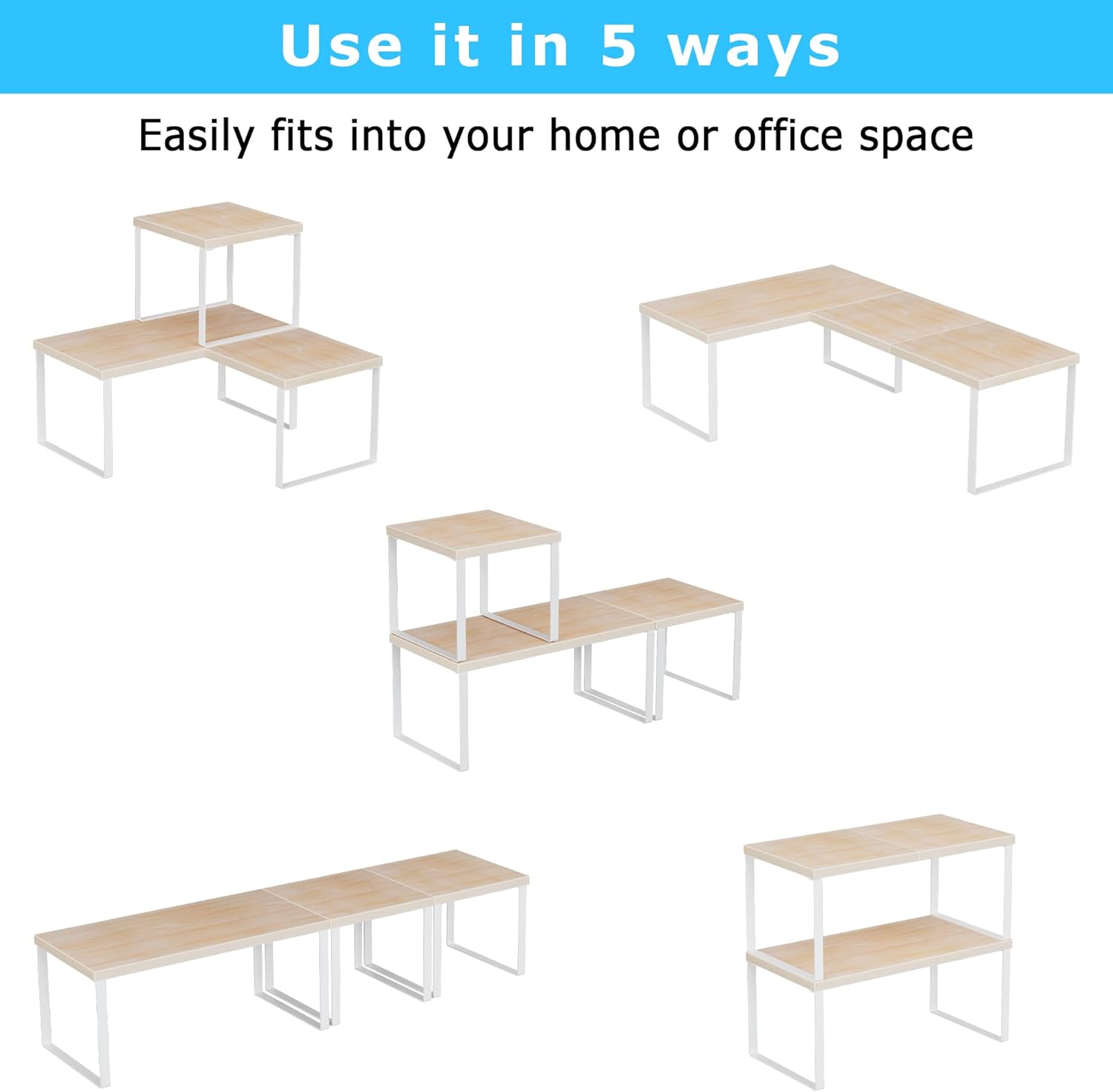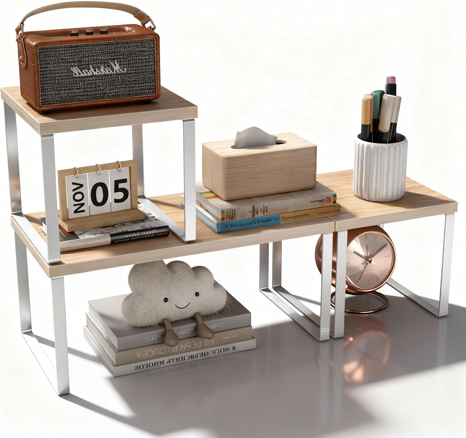 - 【Versatile & Customizable Design】The Aothia wood desktop shelf features a 2-tier stackable design with two separate pieces that can be arranged in various ways to suit your needs. Use it as a monitor stand, bookshelf, spice rack, or corner shelf — perfect for home, office, or kitchen countertop organization.