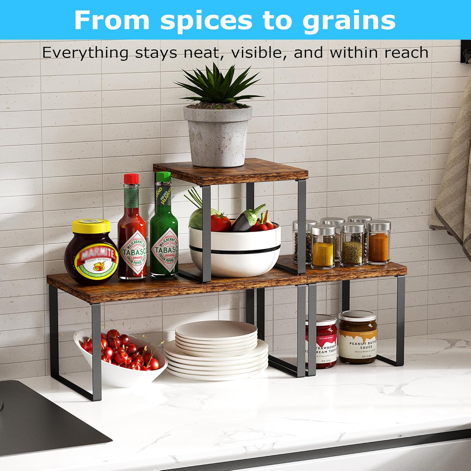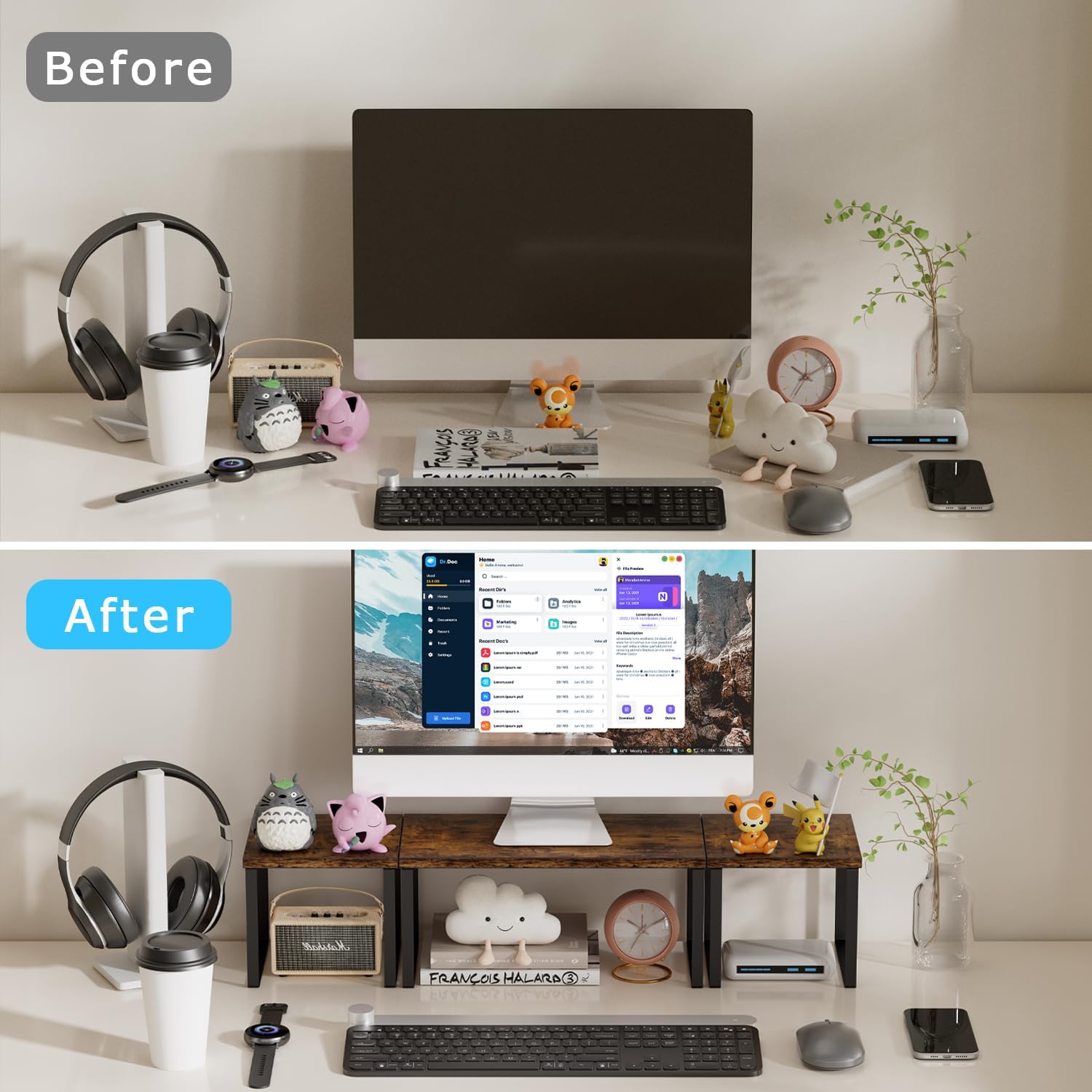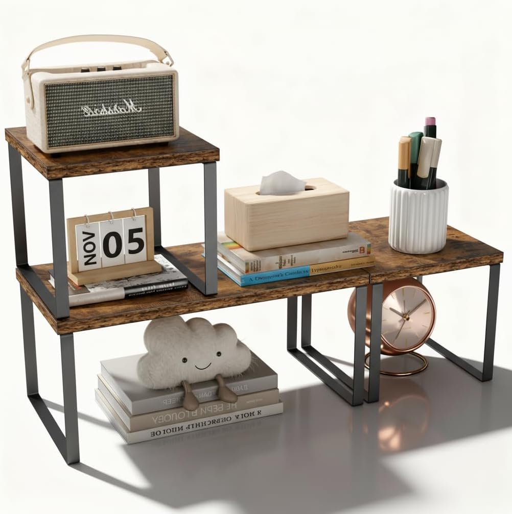 - 【Versatile & Customizable Design】The Aothia wood desktop shelf features a 2-tier stackable design with two separate pieces that can be arranged in various ways to suit your needs. Use it as a monitor stand, bookshelf, spice rack, or corner shelf — perfect for home, office, or kitchen countertop organization.