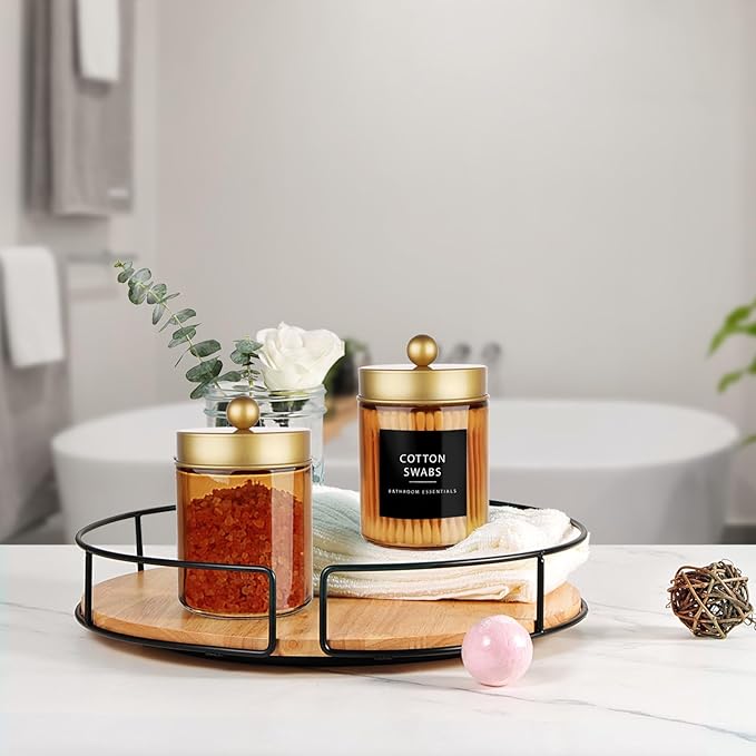 - Durability & Premium Quality: This bathroom storage is crafted from thick glass, these jars block some lighting to protect sensitive items (like essential oils or bath salts). The steel lids are coated to prevent tarnishing, ensuring they stay beautiful for years. Unlike flimsy plastic organizers, these jars won't stain, warp, or break easily. They're also easy to clean—just wipe with a damp cloth. A small investment for a lifetime of elegant storage.