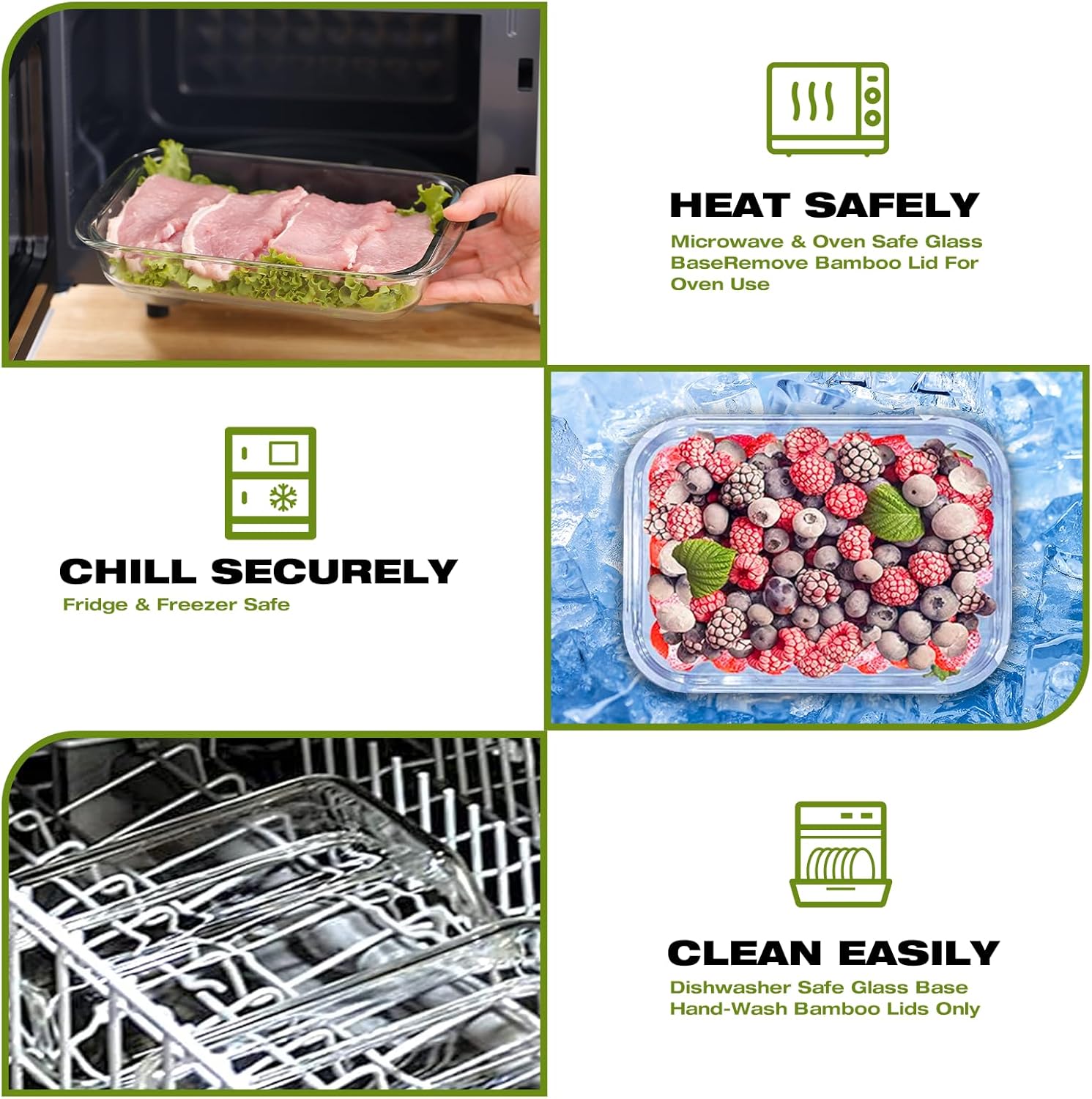 - 【HEALTH-SAFE & PLASTIC FREE MATERIALS】 Made from borosilicate glass and natural bamboo, these eco friendly containers are completely BPA free and plastic free, offering a health-safe alternative to ordinary plastic food storage containers.