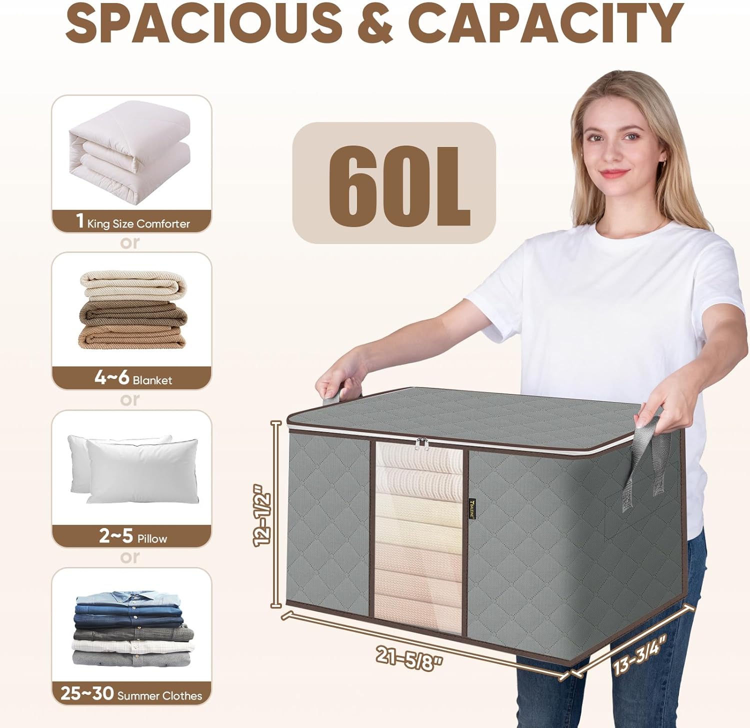 - Large Capacity: With a spacious 16 Gallon (60L) capacity, this storage bag is perfect for storing bulky items like bedding, clothing, and towels, as well as shoes, and other household items; A perfect alternative for moving bags, under bed storage and storage bins with lids